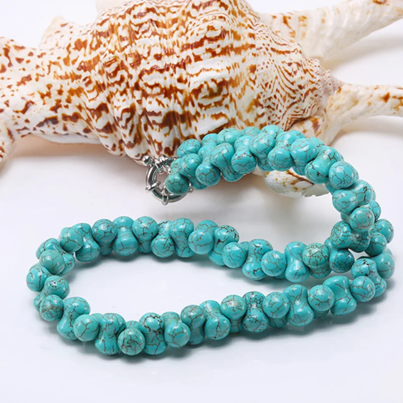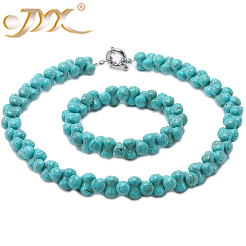 12.5x8.5mm Bone-shape Blue Turquoise Necklace Bracelet Set
