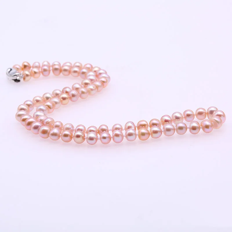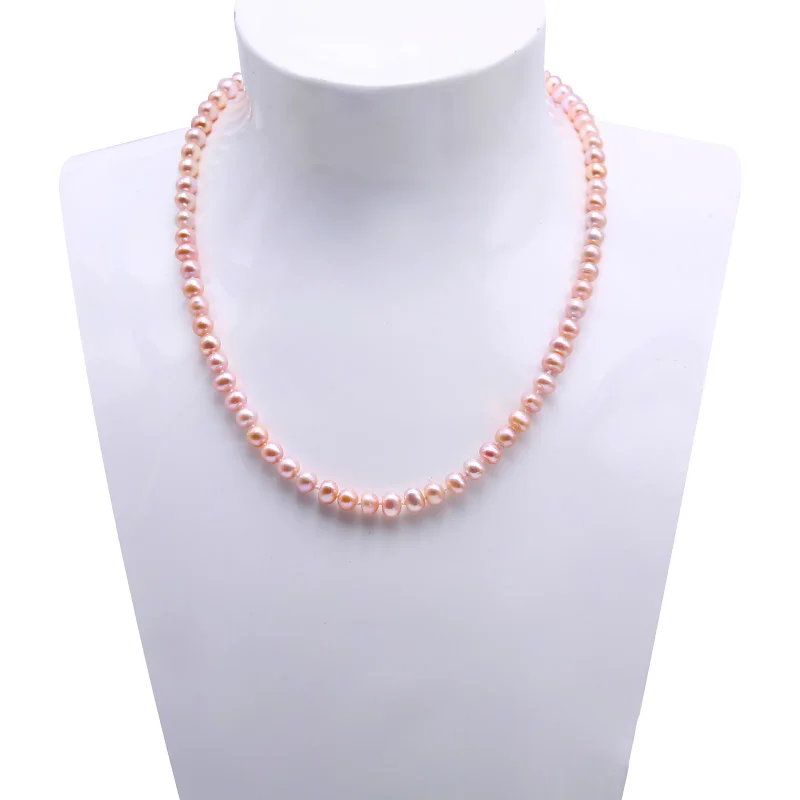 6-7mm Multicolor Pearl Necklace 925 Silver Natural Pearl Necklace Women Choker Necklace 18 (White Purple Pink)