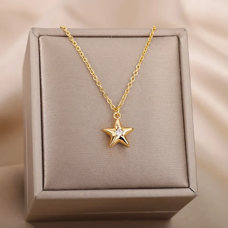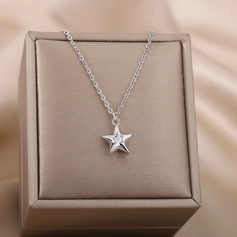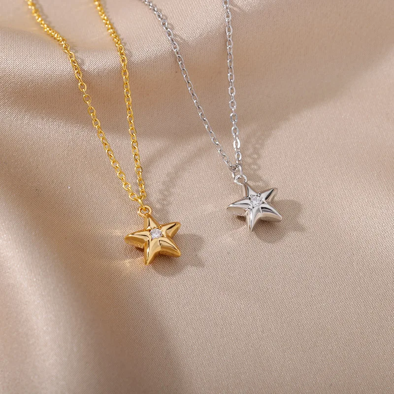 Kalung Bintang untuk Wanita Baja Tahan Karat Warna Emas Kalung Liontin Zirkon 2023 Tren Choker Tulang Selangka Perhiasan Pasangan Pernikahan