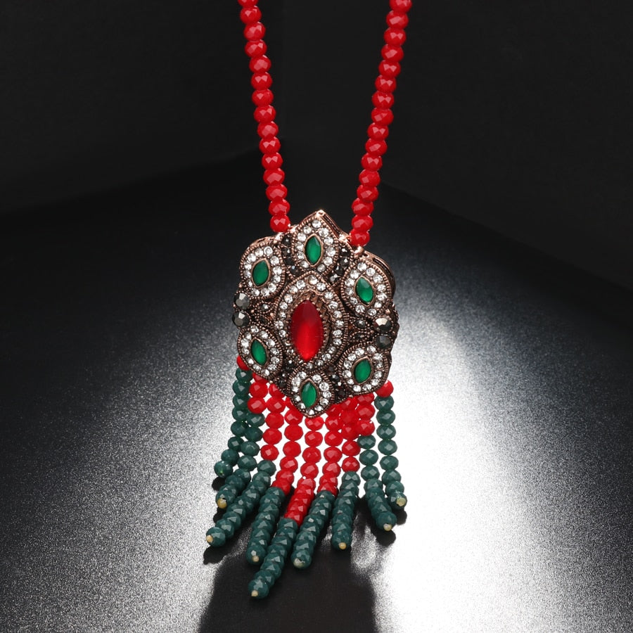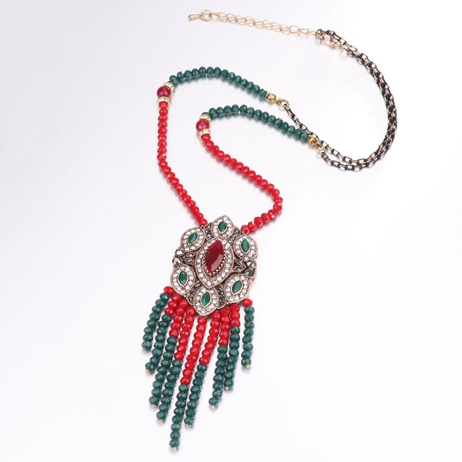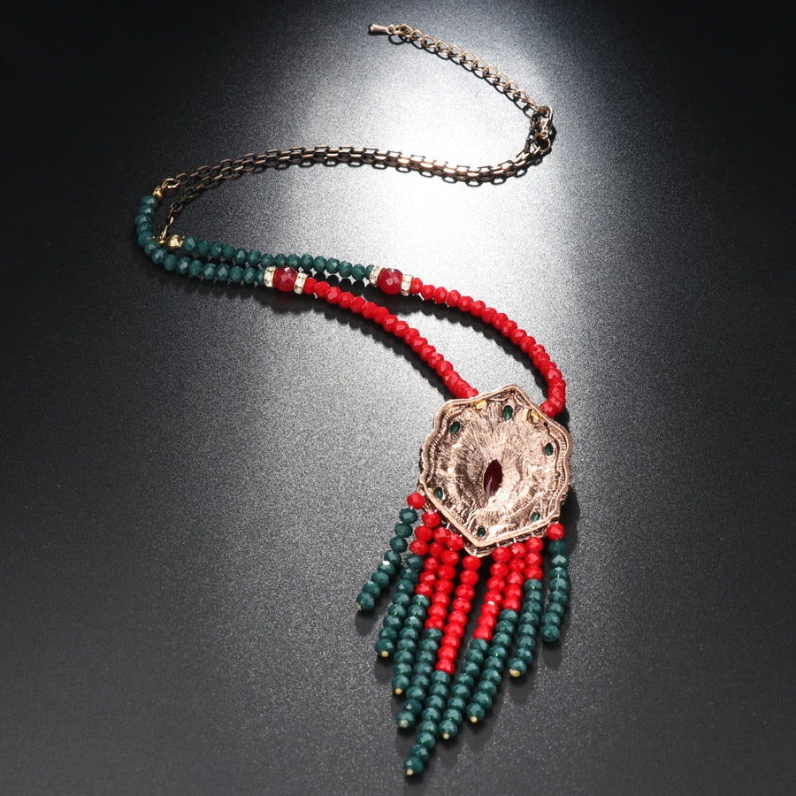 Kinel Bohemia Tassel Pendant Necklace For Women Antique Gold Ethnic Style With Stone Suspensions Long Necklace Vintage Jewerly