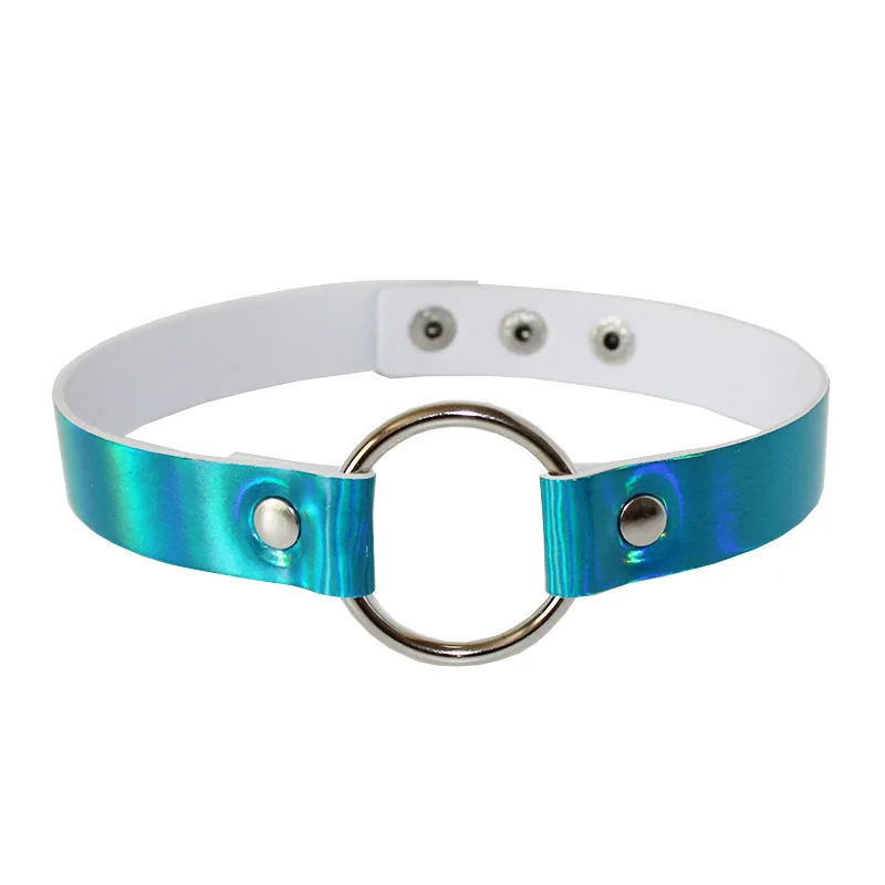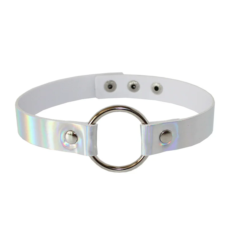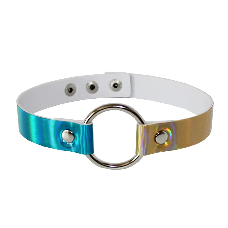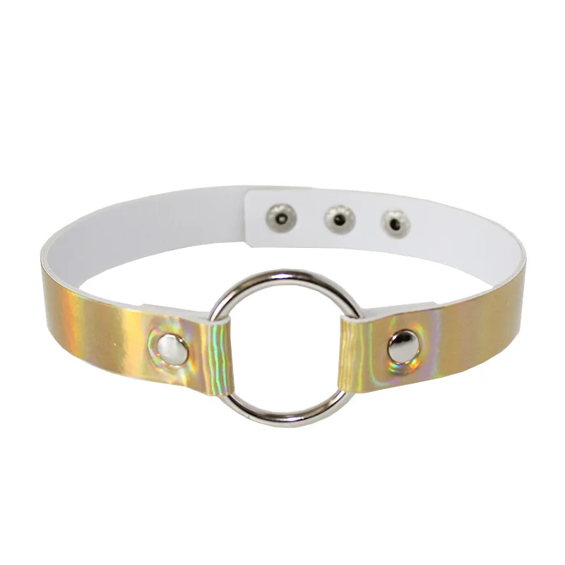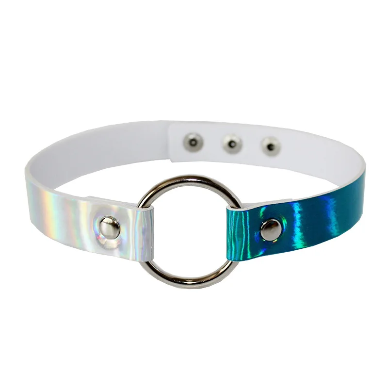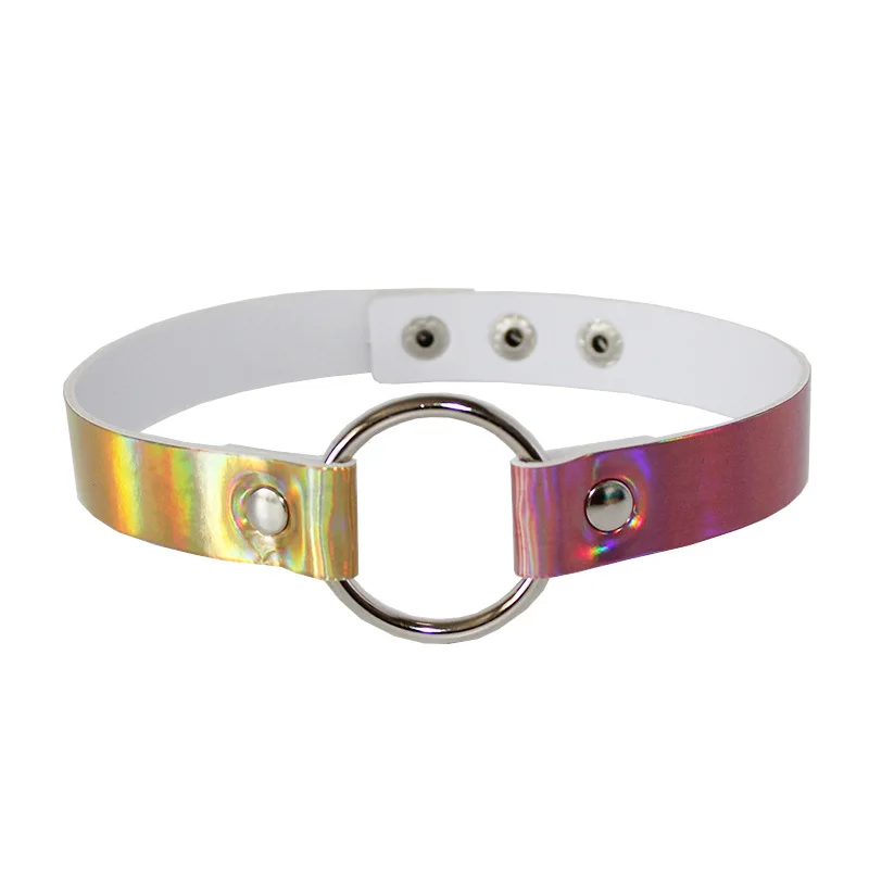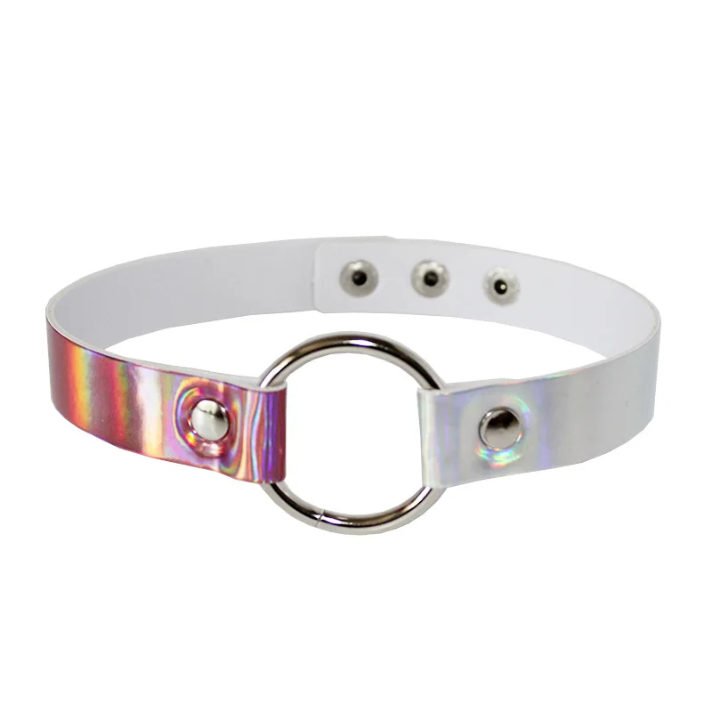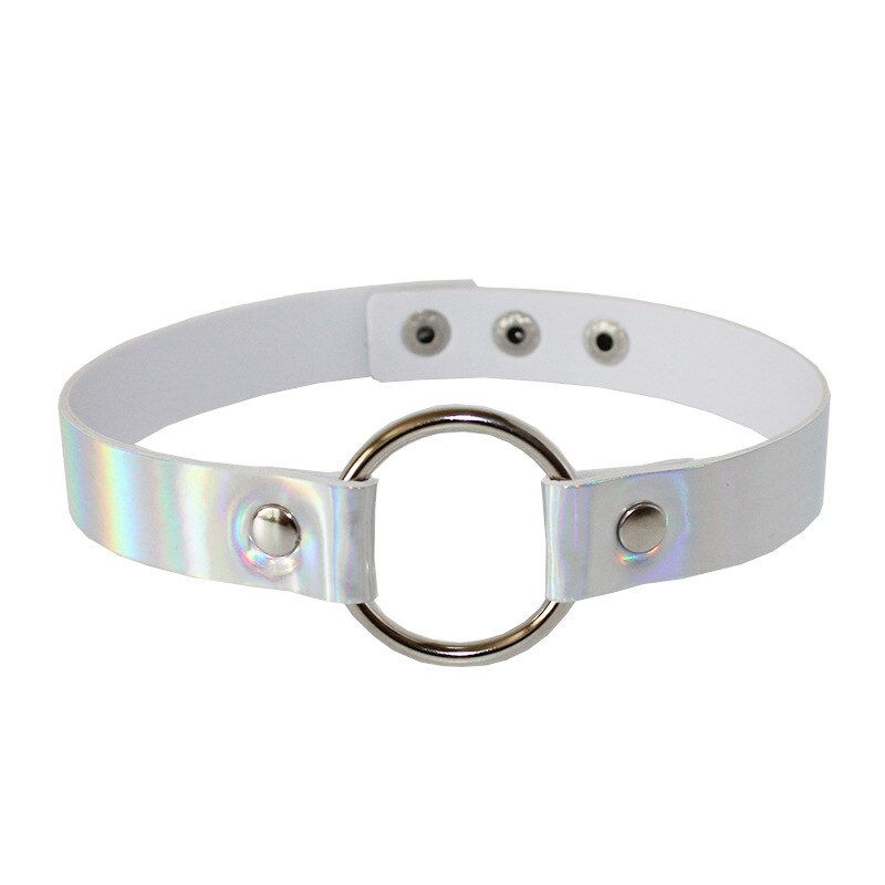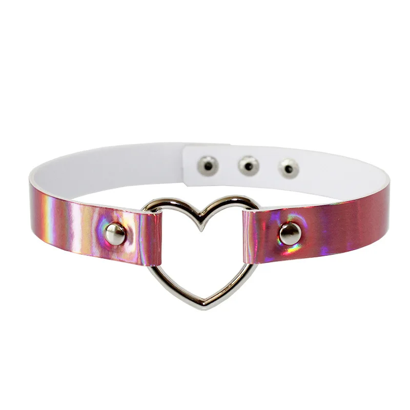 Kirykle  Laser Light PU Leather Choker Necklace metal Heart/circle shape Pendant Charm For Punk Collar Chocker 39*1.8cm Adjustab