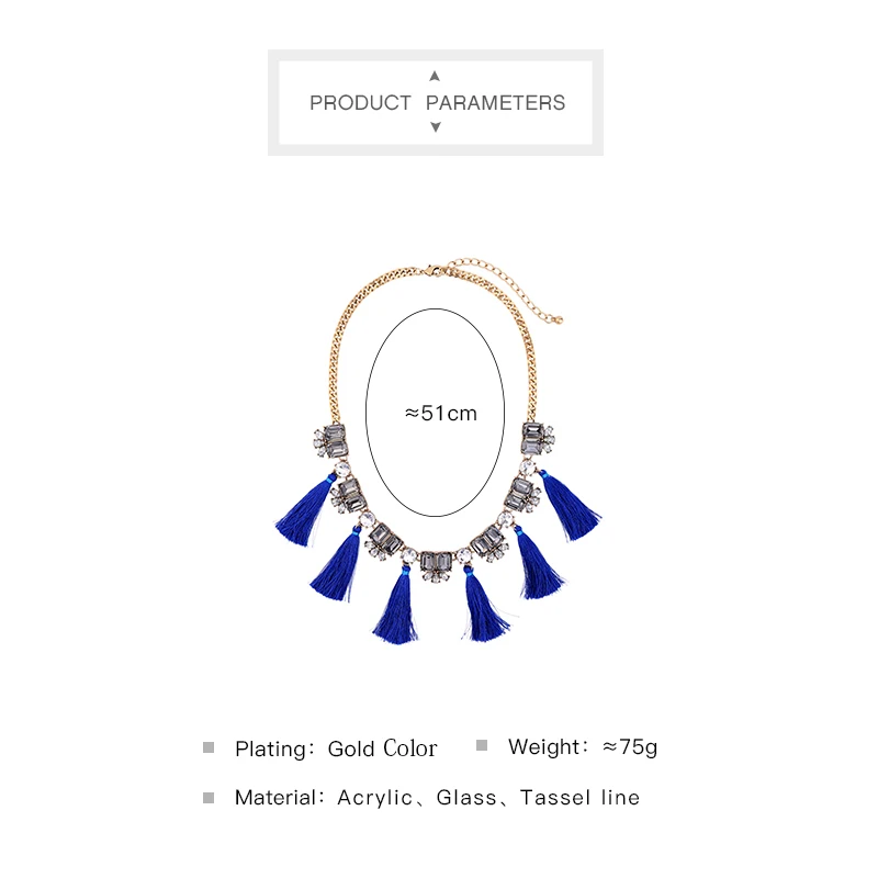 kissme Blue & Grey Tassel Necklace Special Design Rectangle Crystal Short Women Necklace Vintage Jewelry