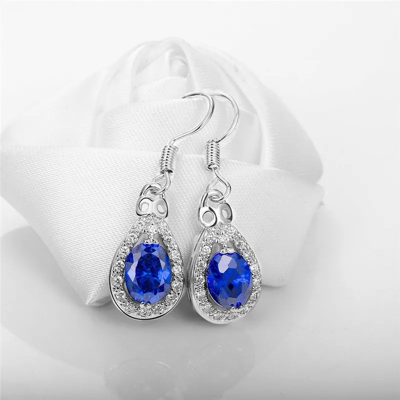 KJ-GPE1042-C, Ki Fashion blue collection earring, Top AAA blue CZ, best for party, gift, or Women.