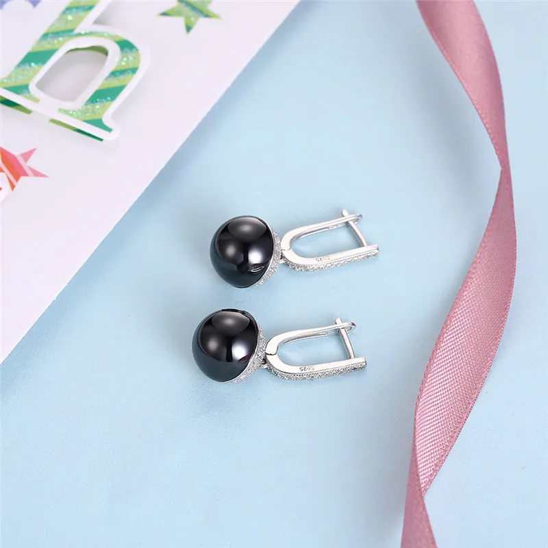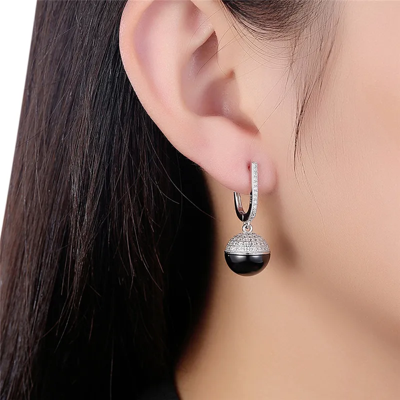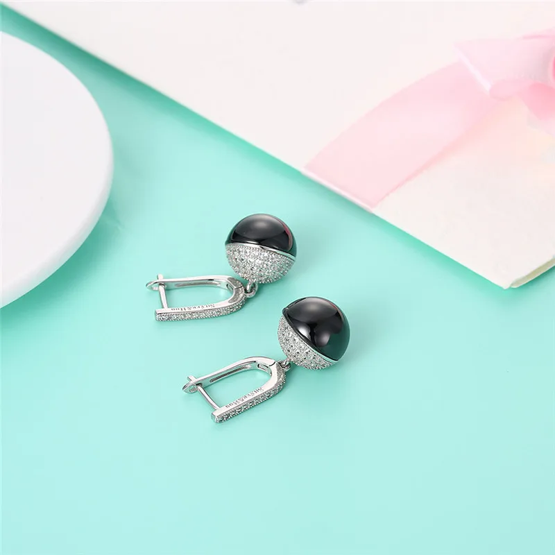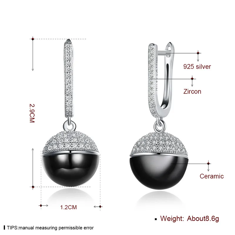 KJ-SH-CE019-BK, drop ball style, with black ceramic and AAA clean CZ earring,individuation best for Women, party or gift