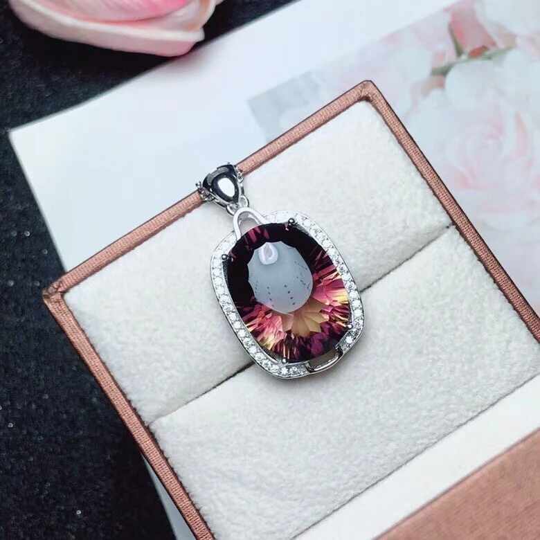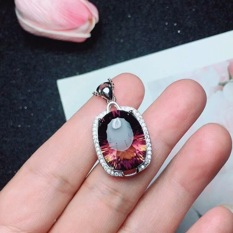 boutique jewelry 925 pure silver inlaid natural purple crystal yellow Pendant + Necklace