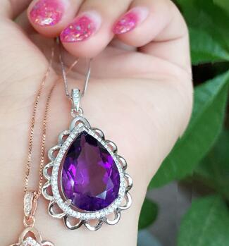 boutique jewelry,925 Sterling Silver Inlaid Amethyst Women's Necklace + Pendants send chain