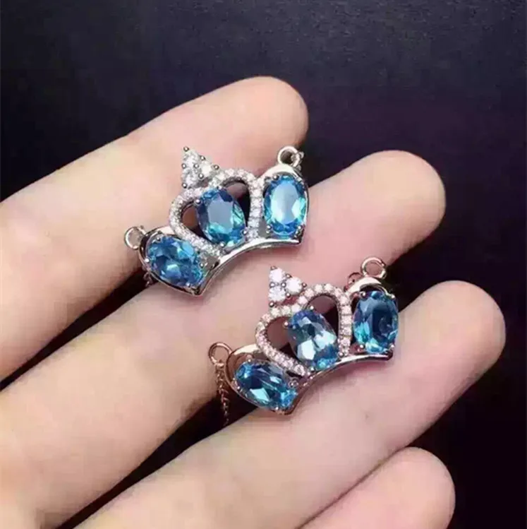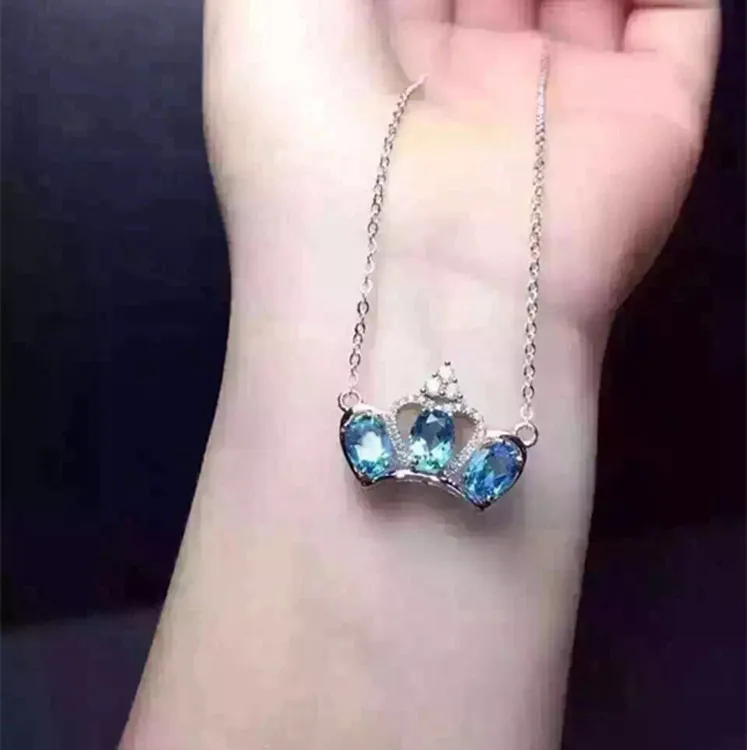 boutique jewelry, 925 Sterling Silver Natural Crystal Topaz Blue Crystal Pendant Necklace Jewelry Chain female clavicl