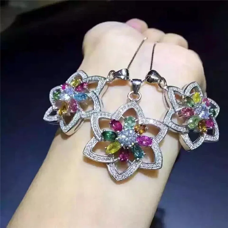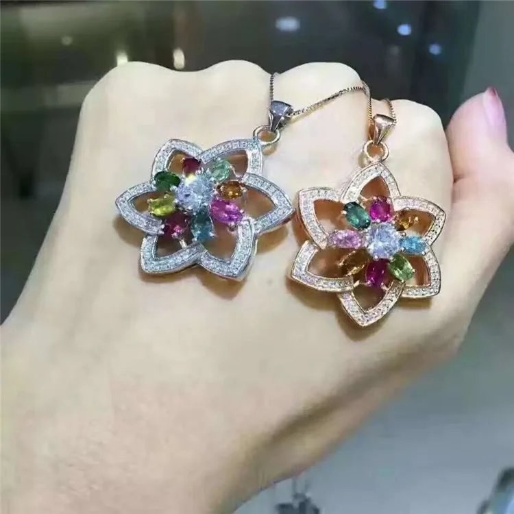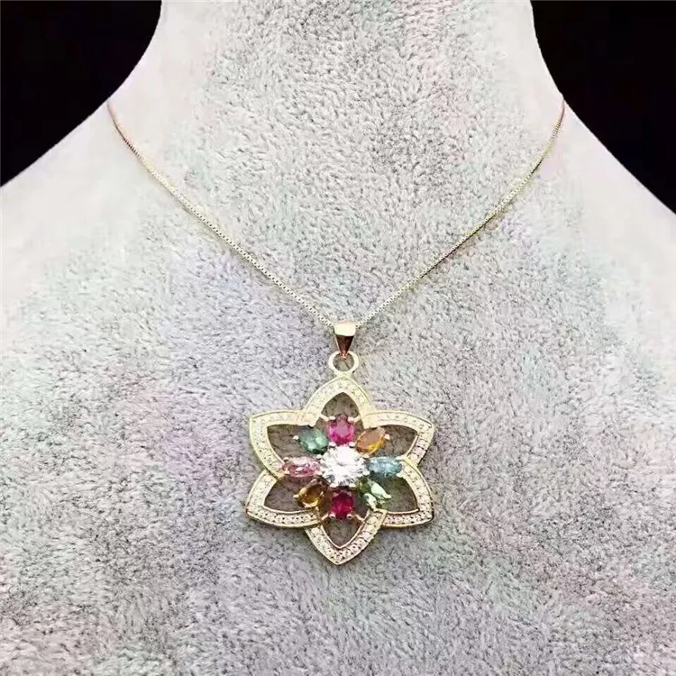 Boutique jewelry Colorful jewelry, natural Tourmaline Pendant, S925 silver inlaid gemstone necklace