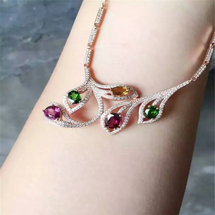 boutique jewelry, Natural color treasure necklace, pendant, inlaid jewelry , S925 Sterling Silver female