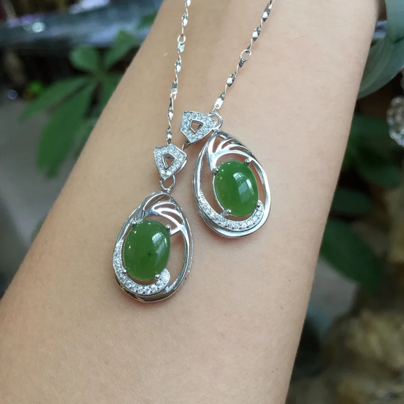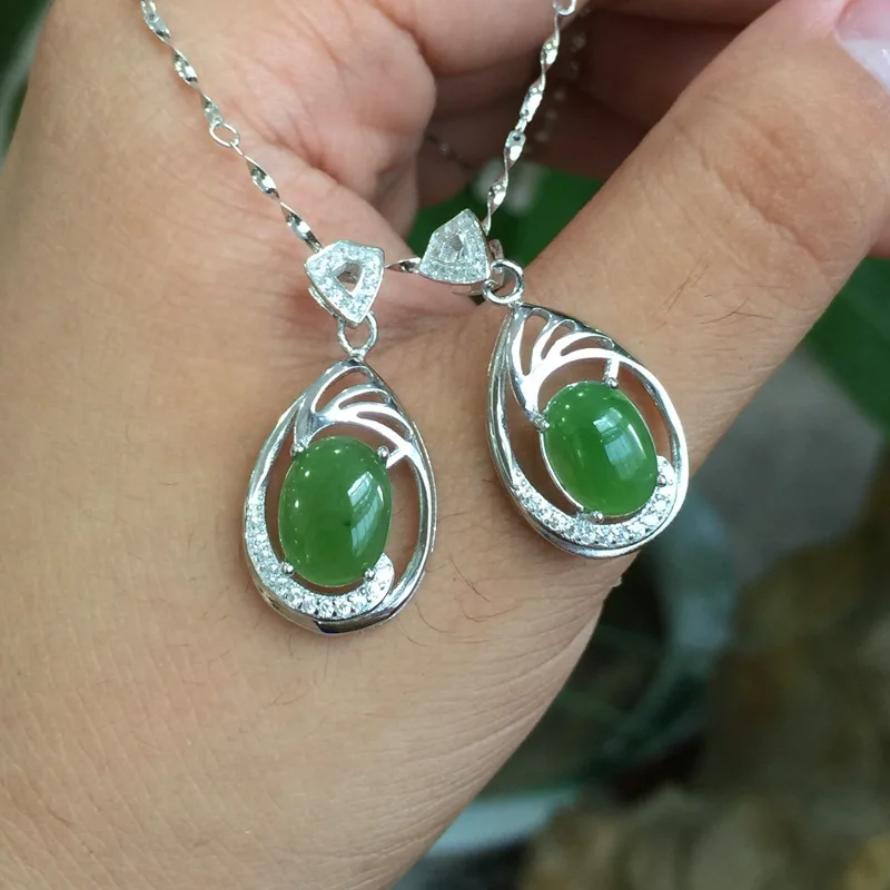 boutique jewelry,Natural Hetian Biyu female pendant 925 silver ice color beautiful