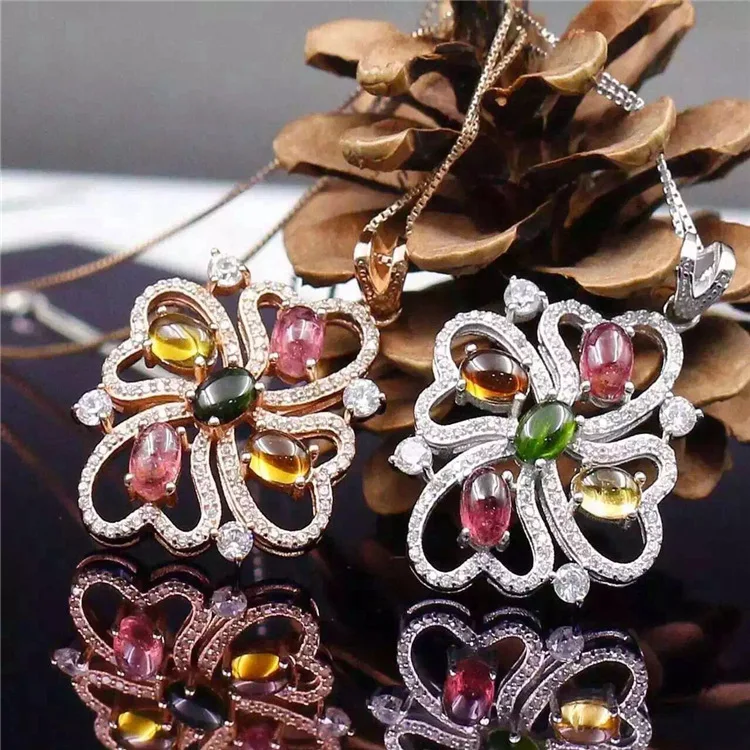 Boutique jewelry Natural tourmaline 925 Sterling Silver Pendant with a candy colored woman Necklace