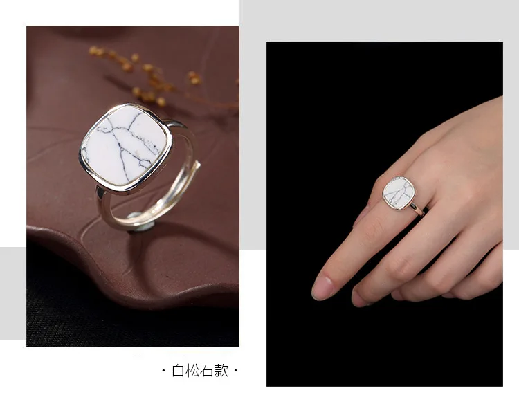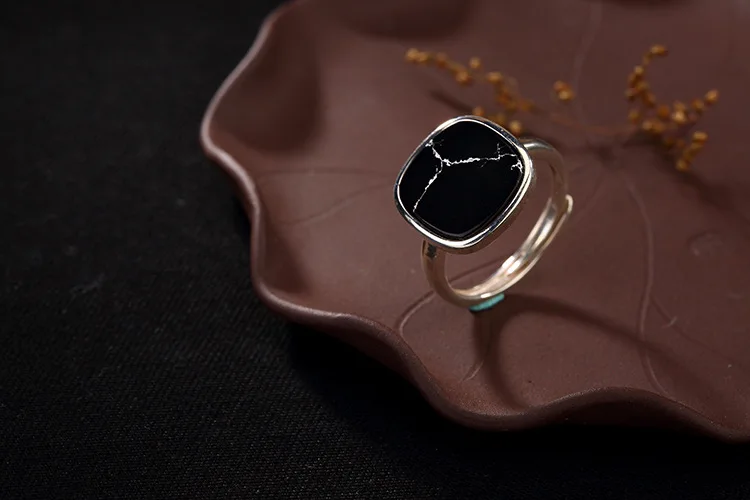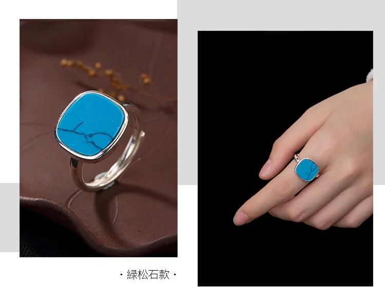 Boutique jewelry S925 pure silver inlaid white, blue, black pine, geometric section, lady's high-end open ring.