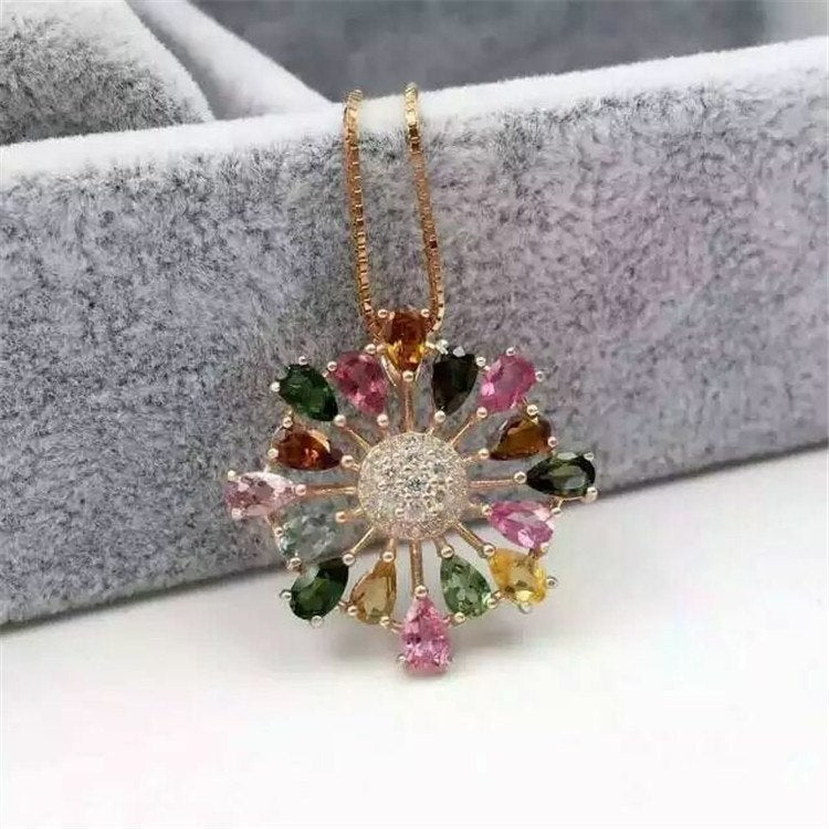 boutique jewelry, Women's natural tourmaline, snow pendants, inlaid jewelry , S925 silver, pure silver