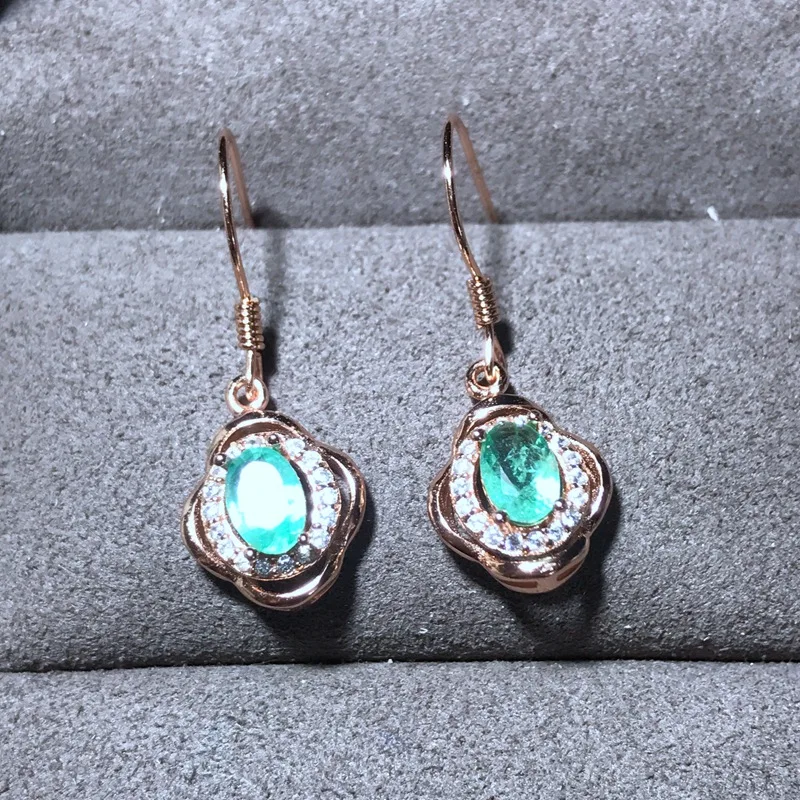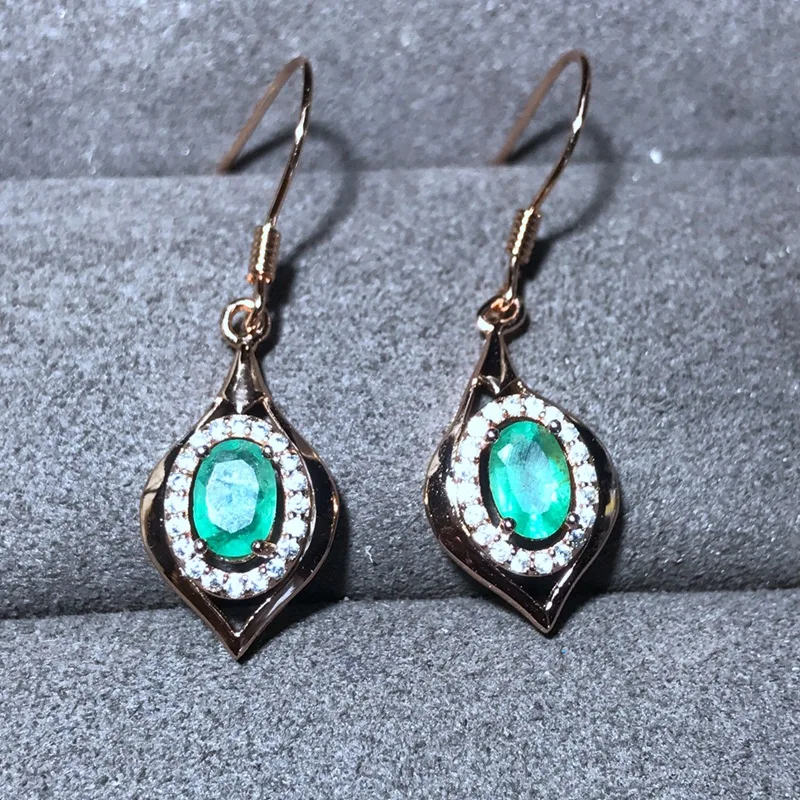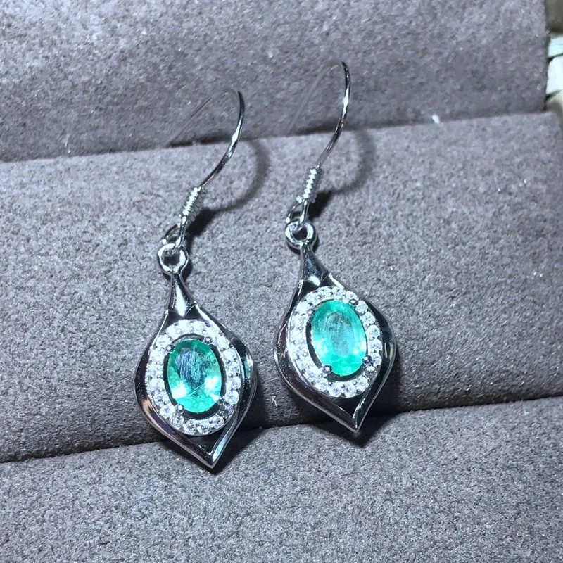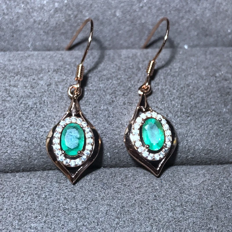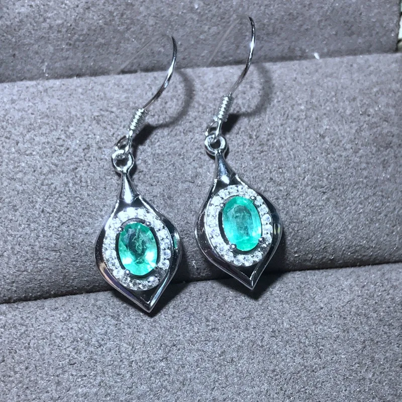 Fine Jewelery Natural Emerald Women's Earrings Made 925 Sterling Silver Set in Premium Emerald