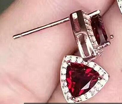 fine jewelry 925 Pure silver inlaid with natural triangle garnet female ear nail jewelry.