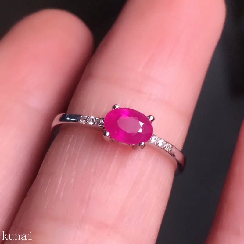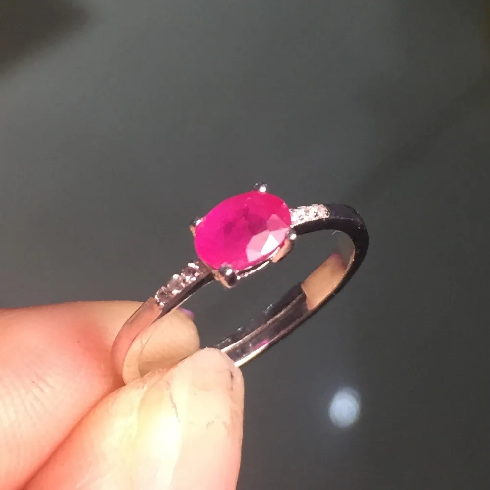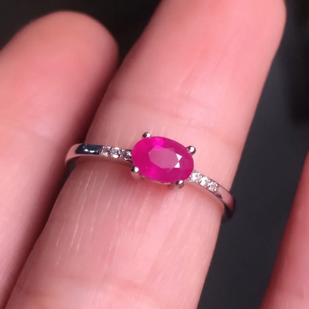fine jewelry 925 Silver inlaid with natural ruby ring.