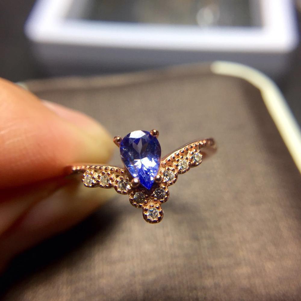 fine jewelry 925 Silver inlaid with natural tanzanite ring jewelry.