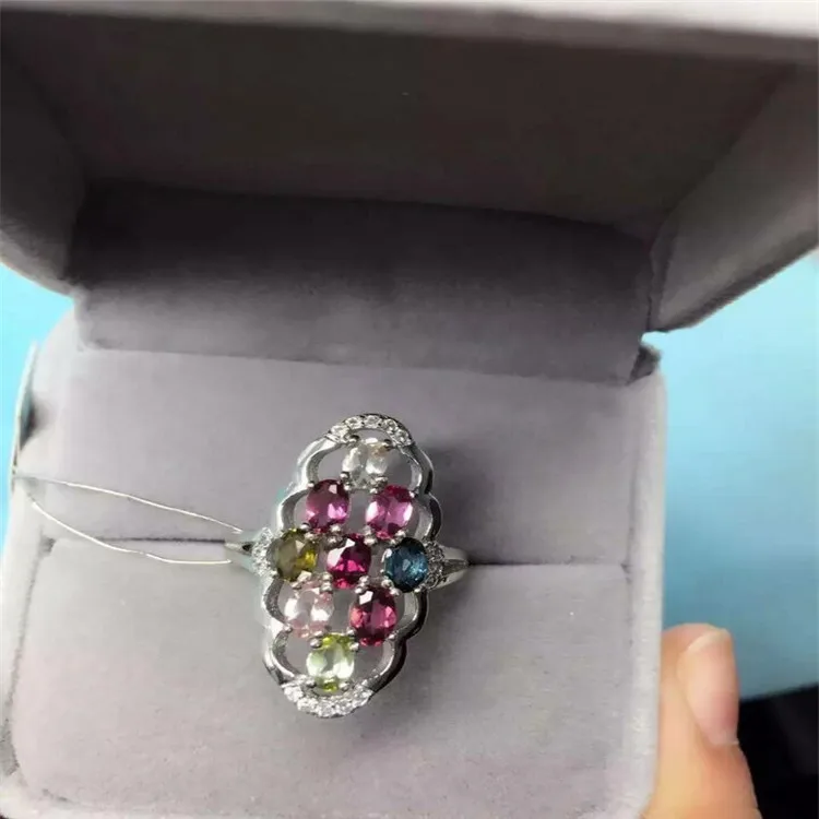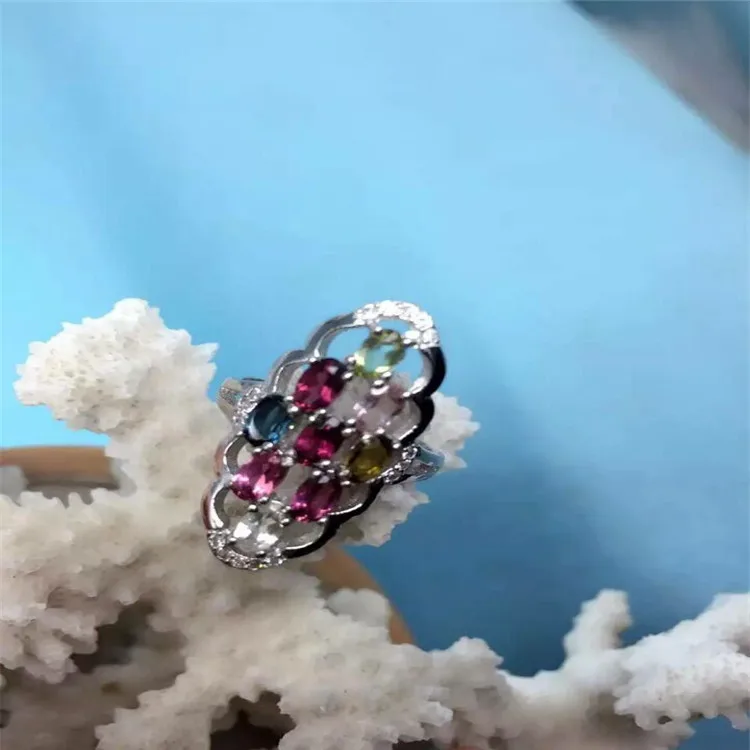 fine jewelry S925 silver inset natural tourmaline 7 gem female ring inlaid to order .