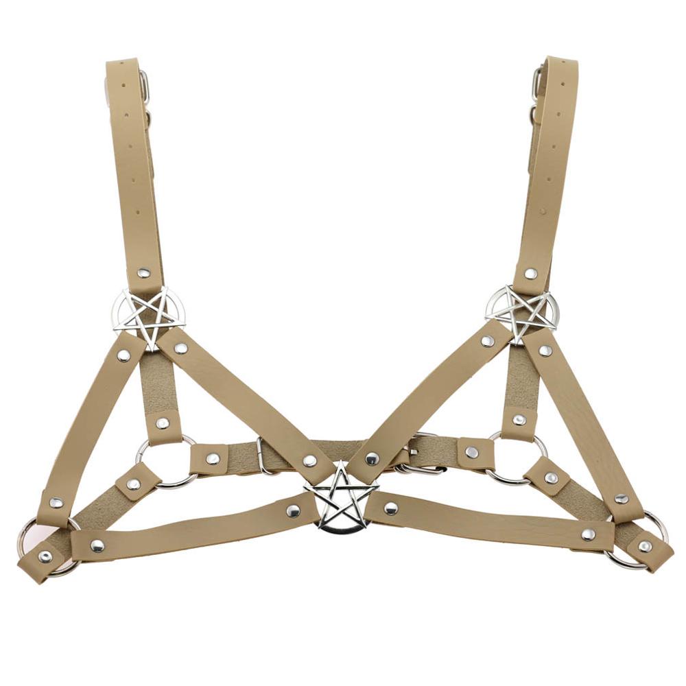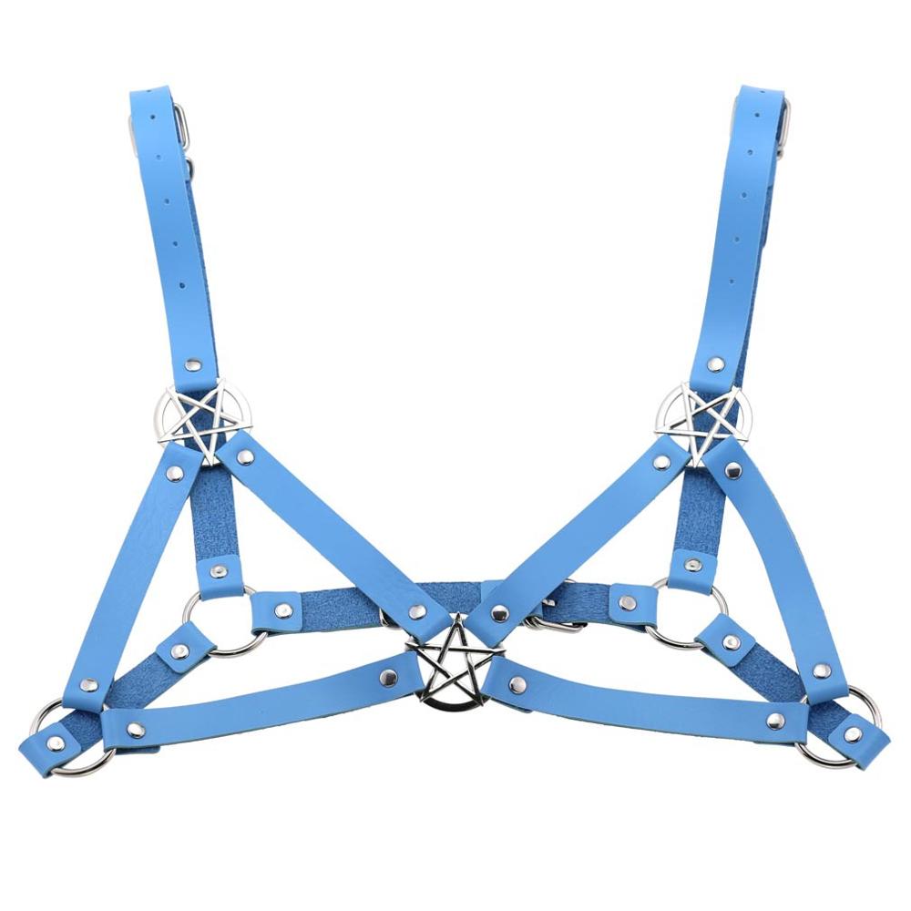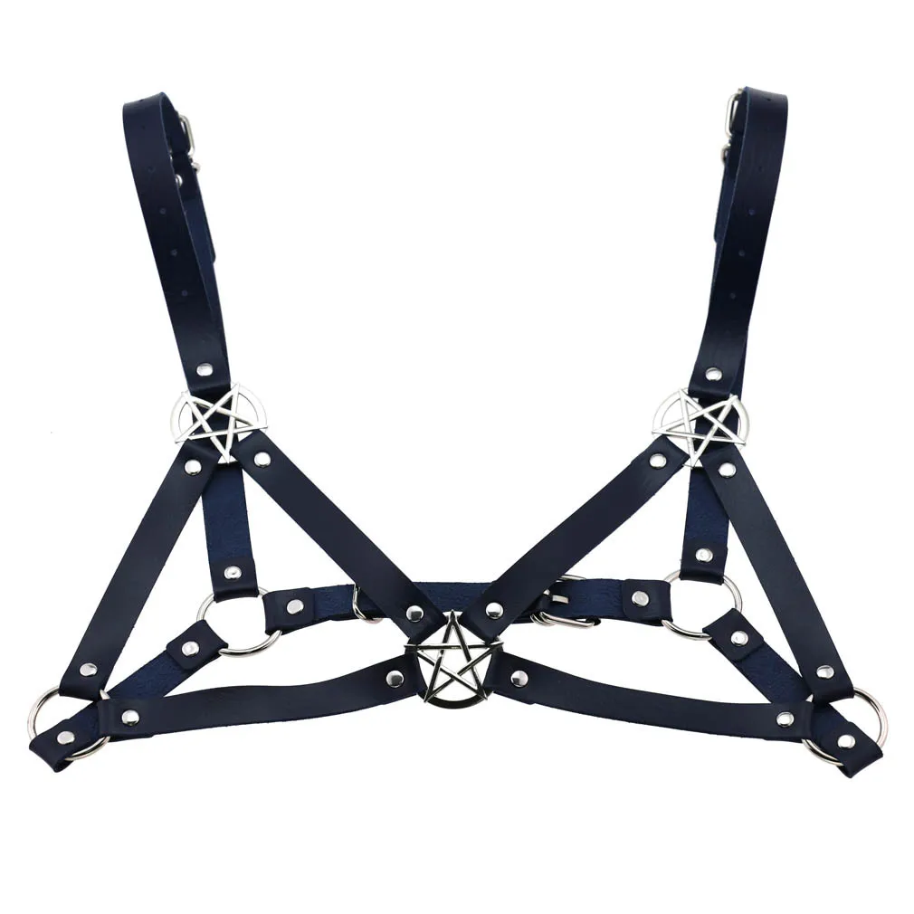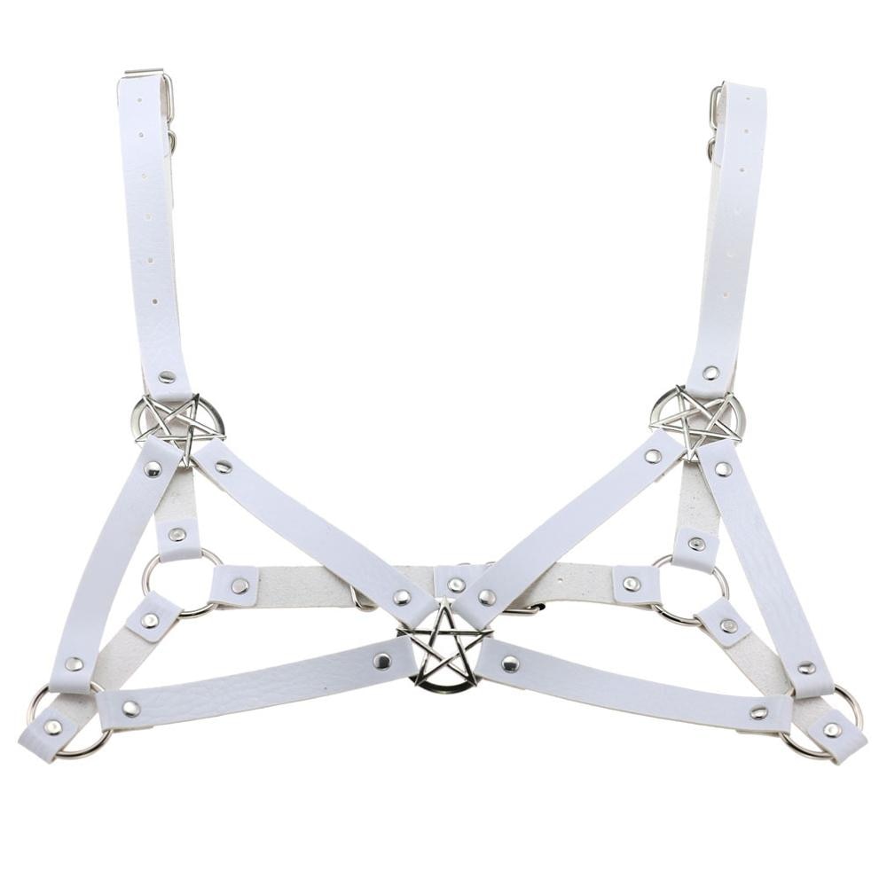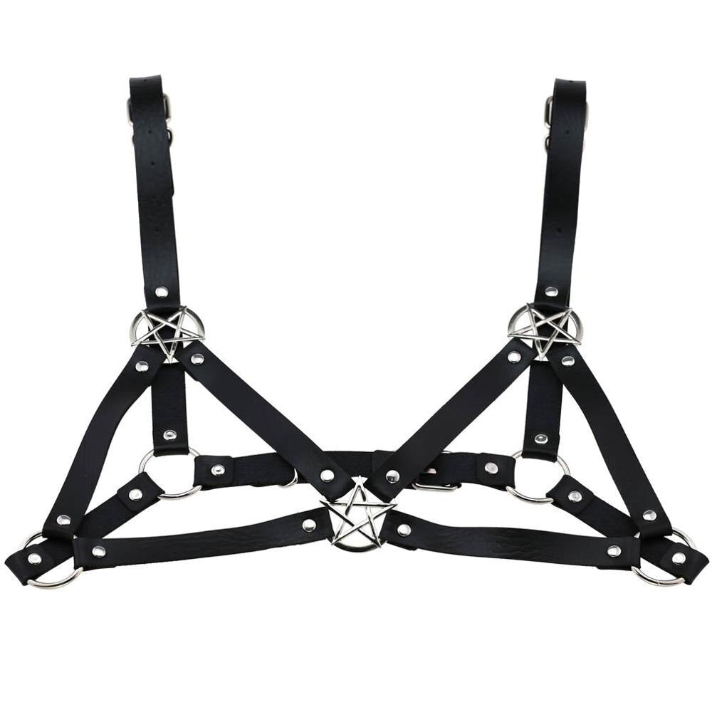 KMVEXO 2022 Punk Gothic Style Metal Stars Bra Body Chest Necklaces for Women Leather Harness Anime Necklace Street Jewelry