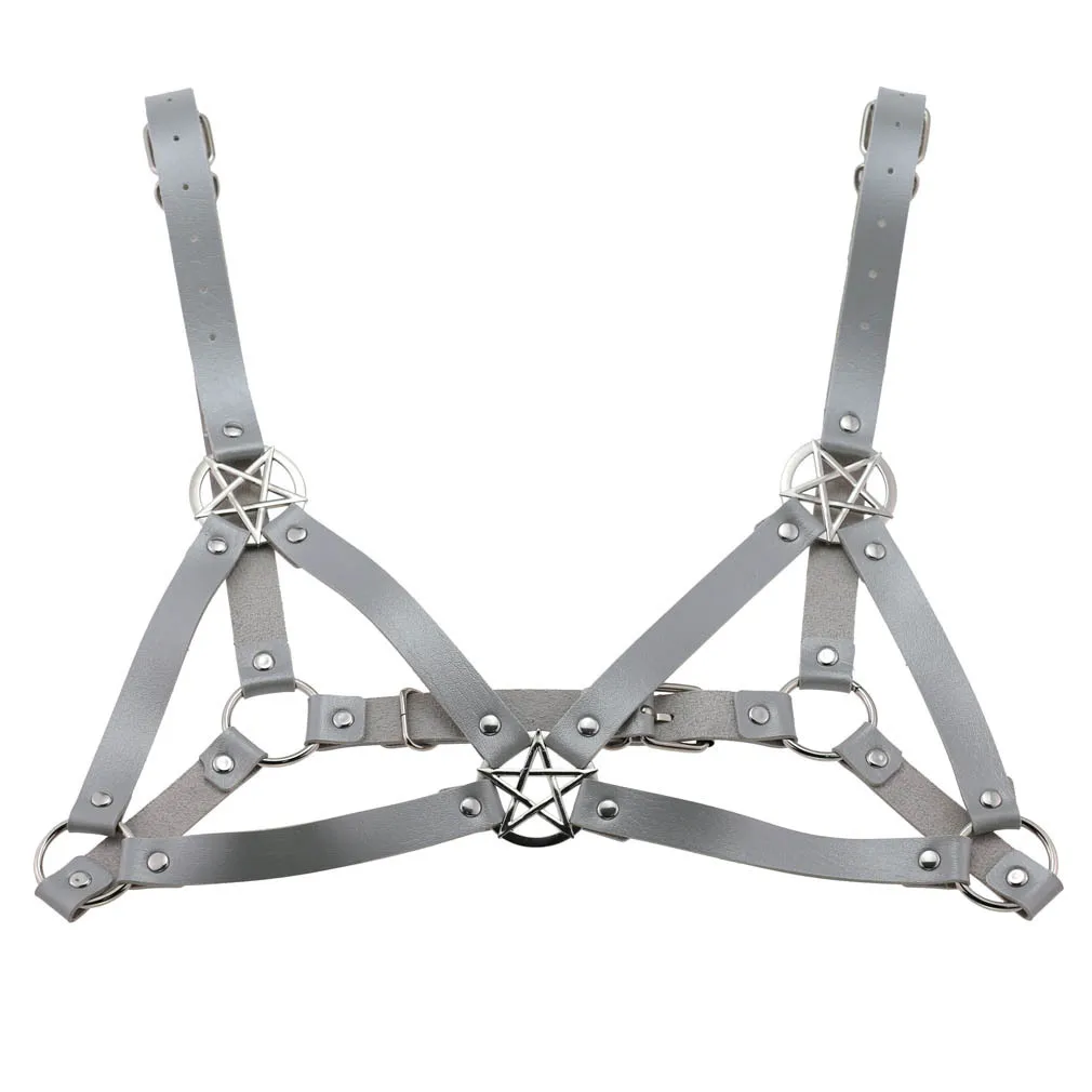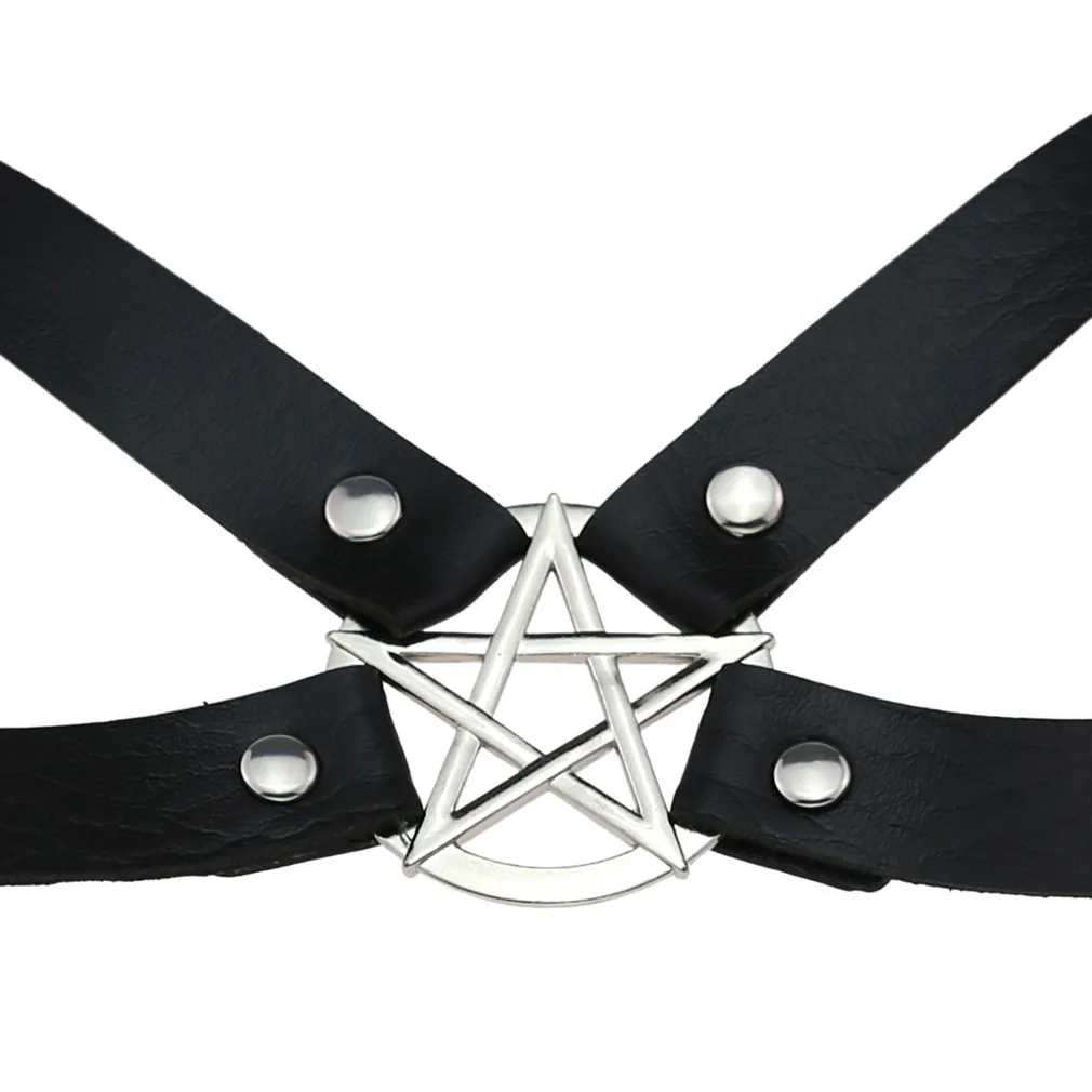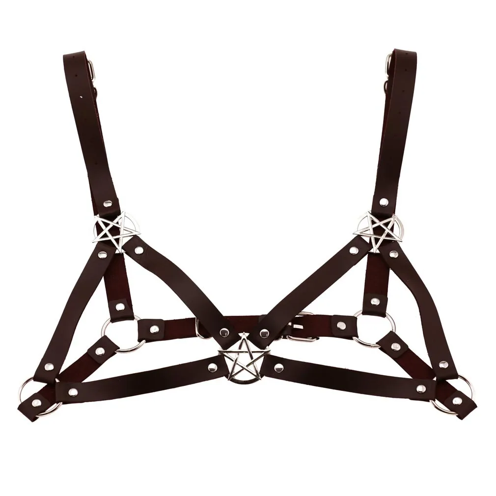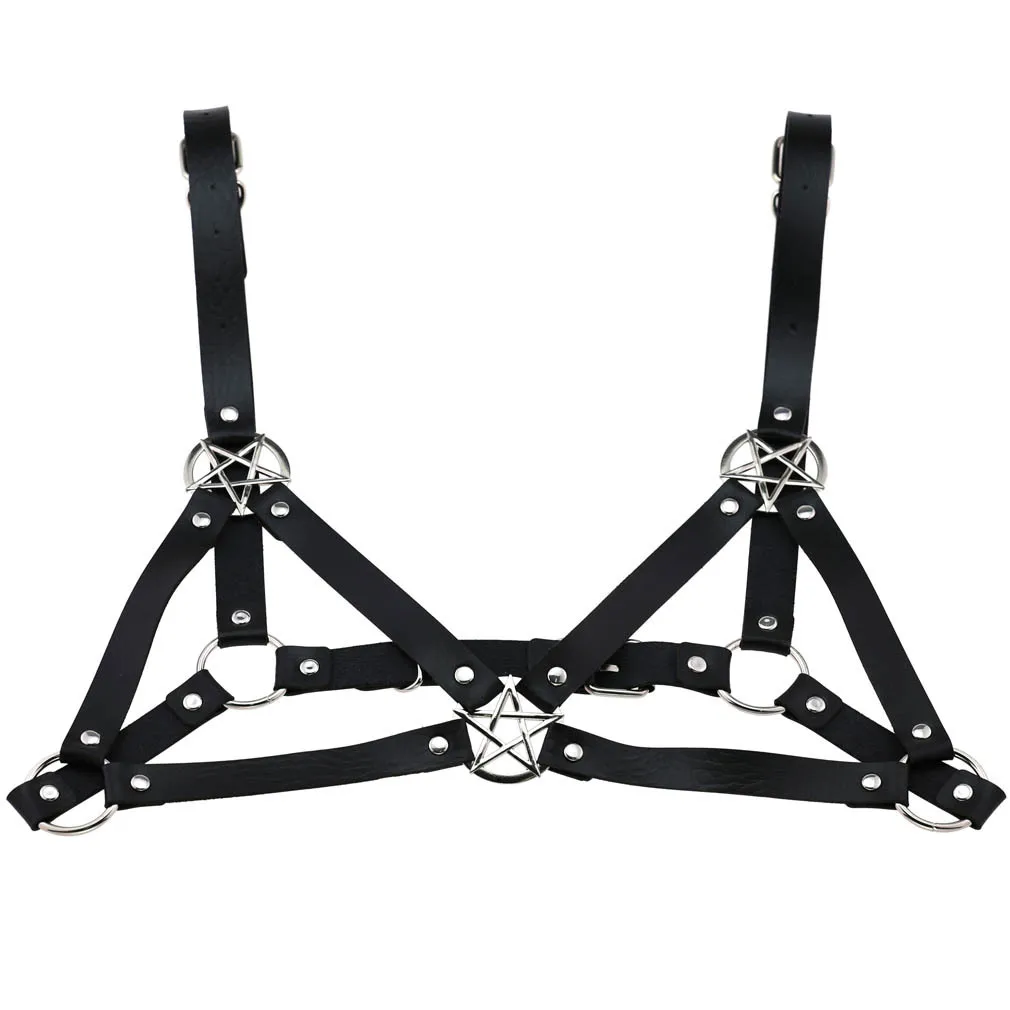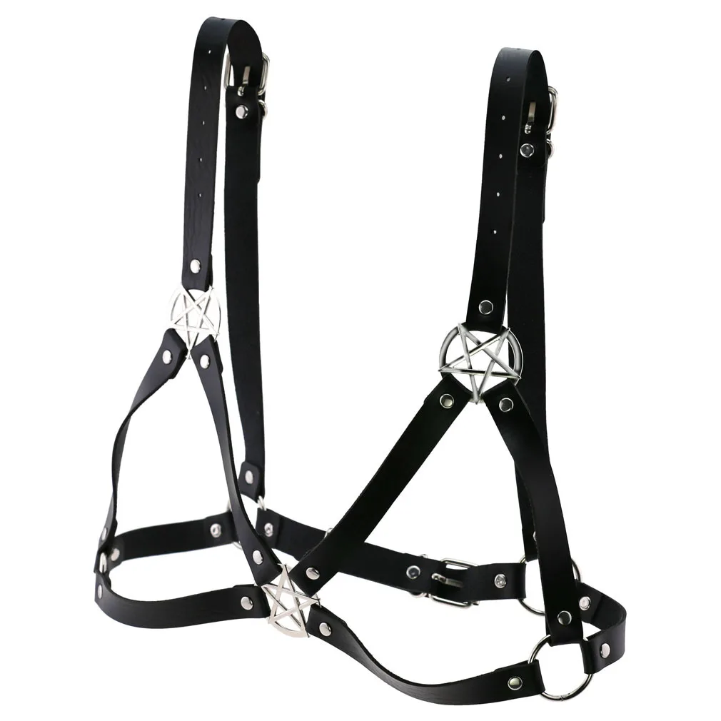 KMVEXO 2022 Punk Gothic Style Metal Stars Bra Body Chest Necklaces for Women Leather Harness Anime Necklace Street Jewelry