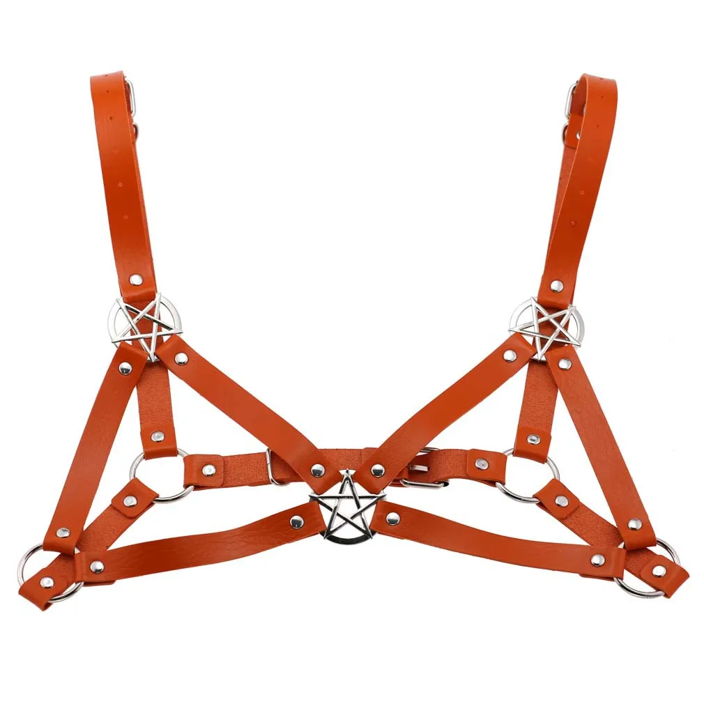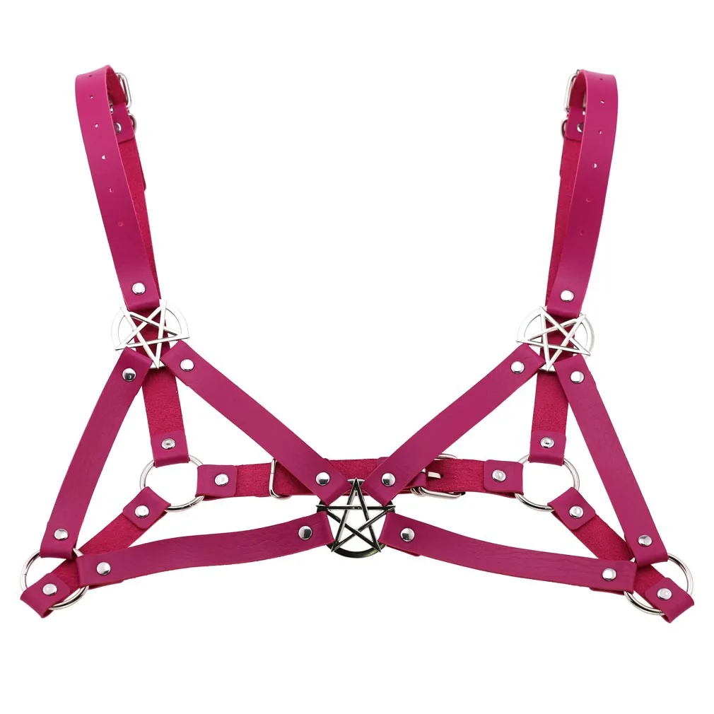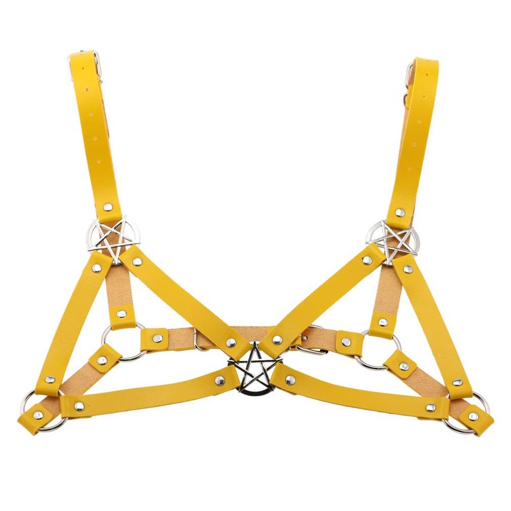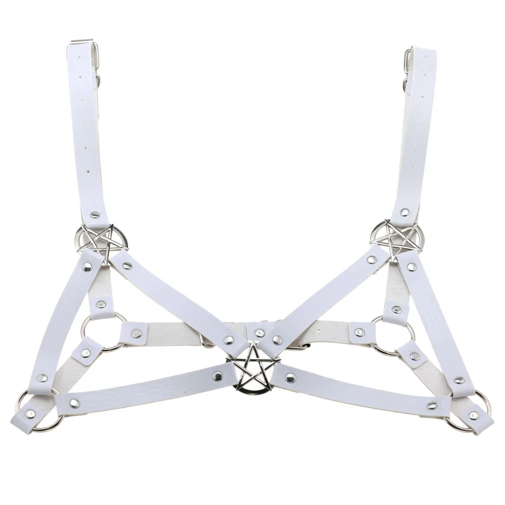 KMVEXO 2022 Punk Gothic Style Metal Stars Bra Body Chest Necklaces for Women Leather Harness Anime Necklace Street Jewelry