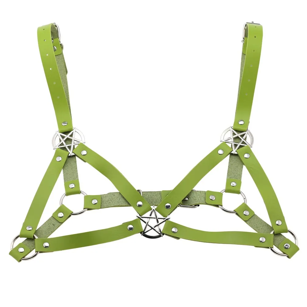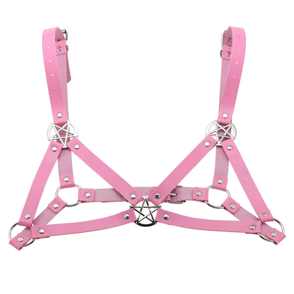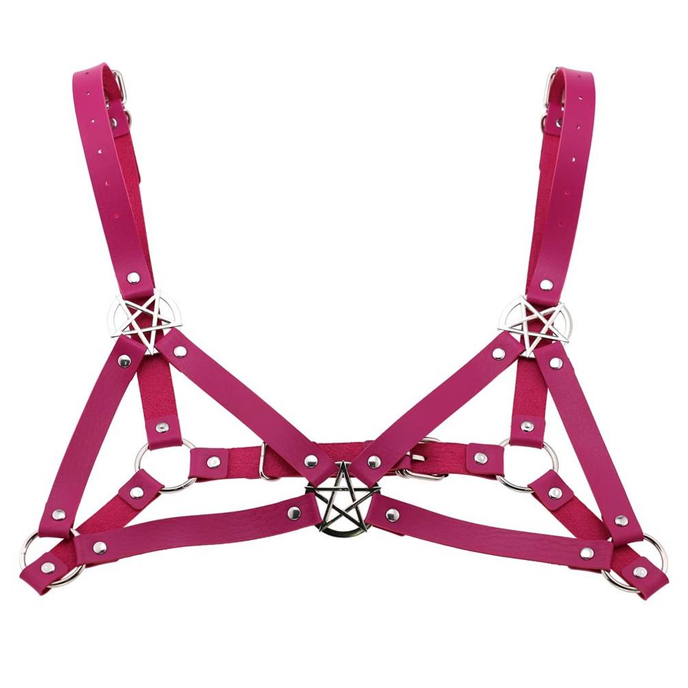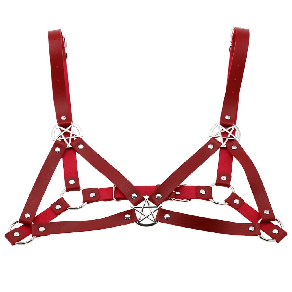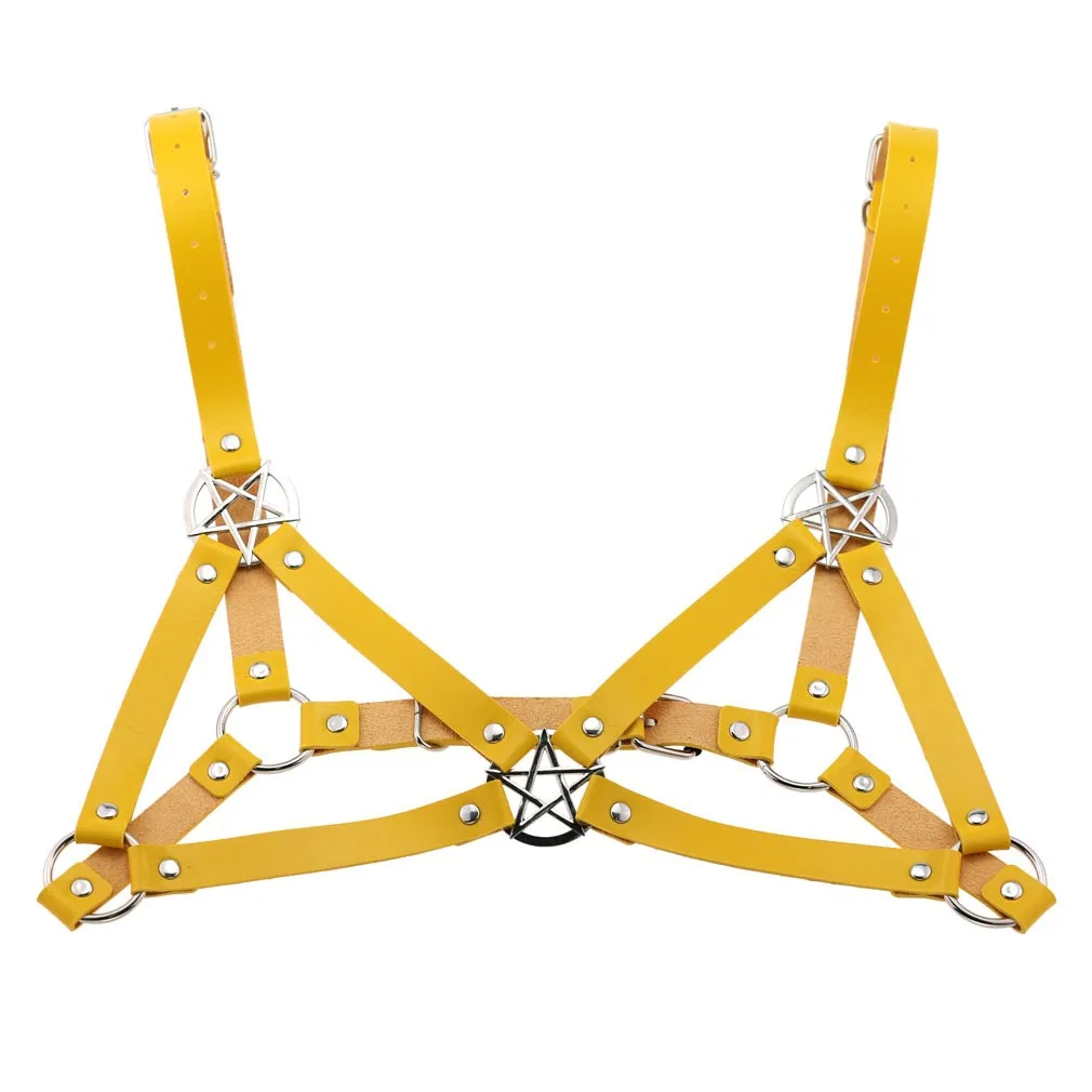 KMVEXO 2022 Punk Gothic Style Metal Stars Bra Body Chest Necklaces for Women Leather Harness Anime Necklace Street Jewelry