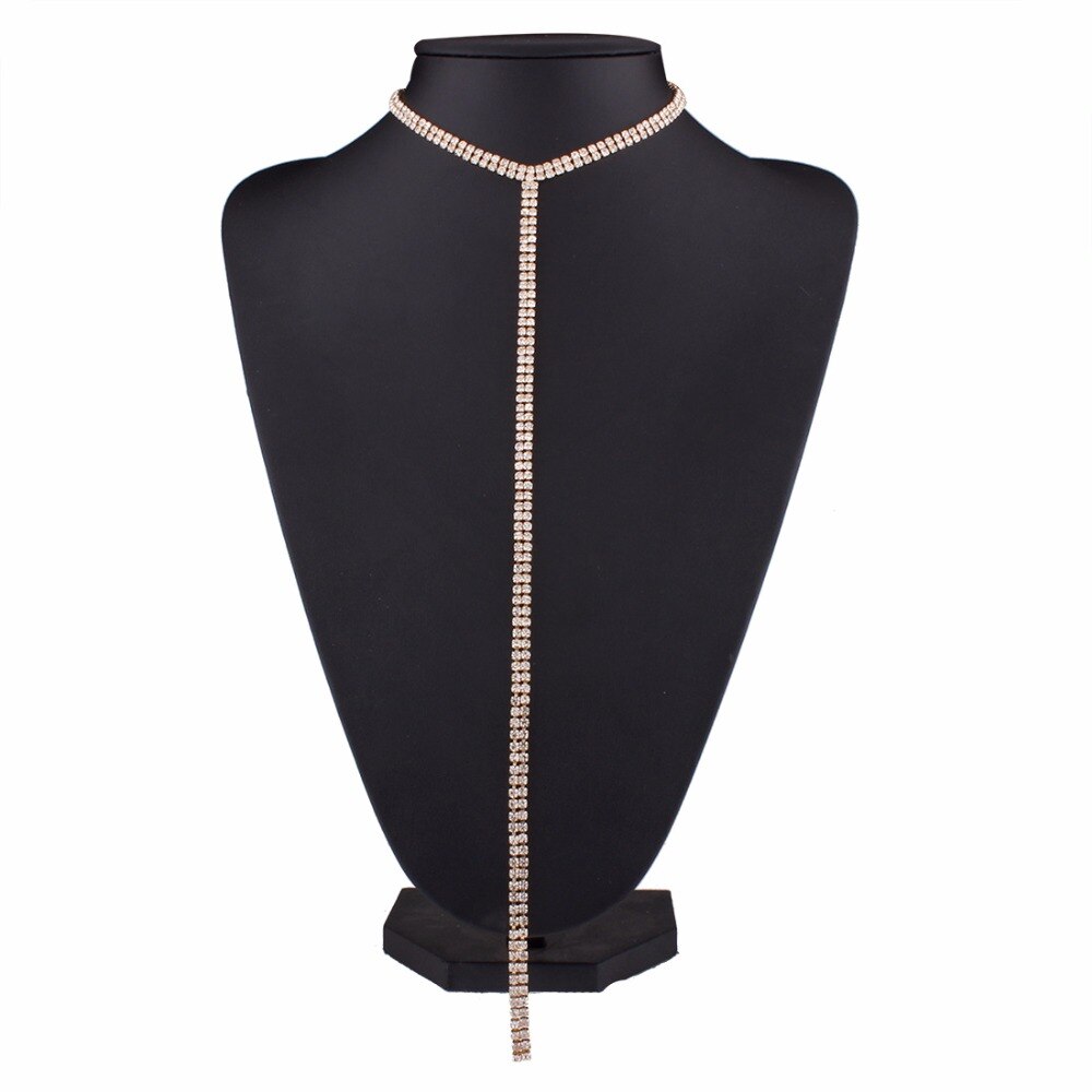 KMVEXO Long Tassel Simple Crystal Rhinestone Choker Necklace Women Gem Statement Collares Chokers chocker Collier Bijoux