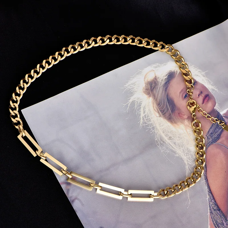 Koaem cuban link chain Necklace Hip-Hop Gold Silver Color Chunky Choker Necklaces Asymmetric Splice Jewelry Party