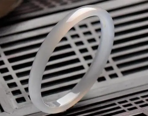 Fine Jewelry 100% Unique Natural Chalcedony Agate Jade Icy White Bangle Bracelet