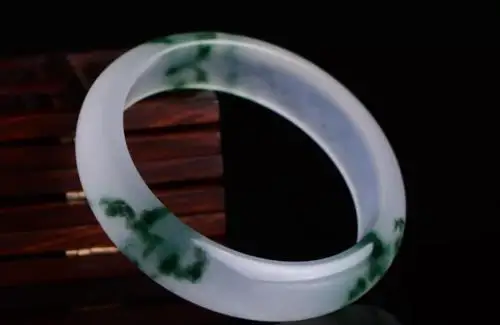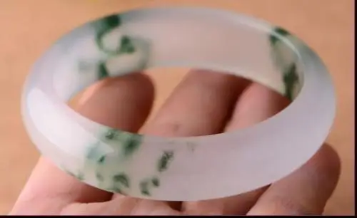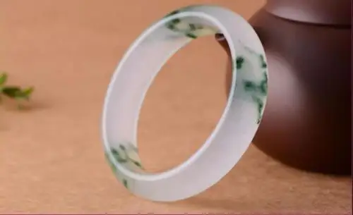 Fine Jewelry Certified Natural Beautiful White Green Jade Bangle Bracelet Handmade