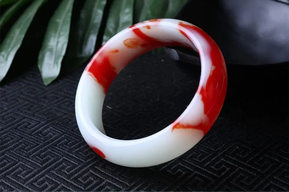 Fine Jewelry China's Unique Fashion Beautiful Red and White, Jade Bangle Bracelet 56~62mm