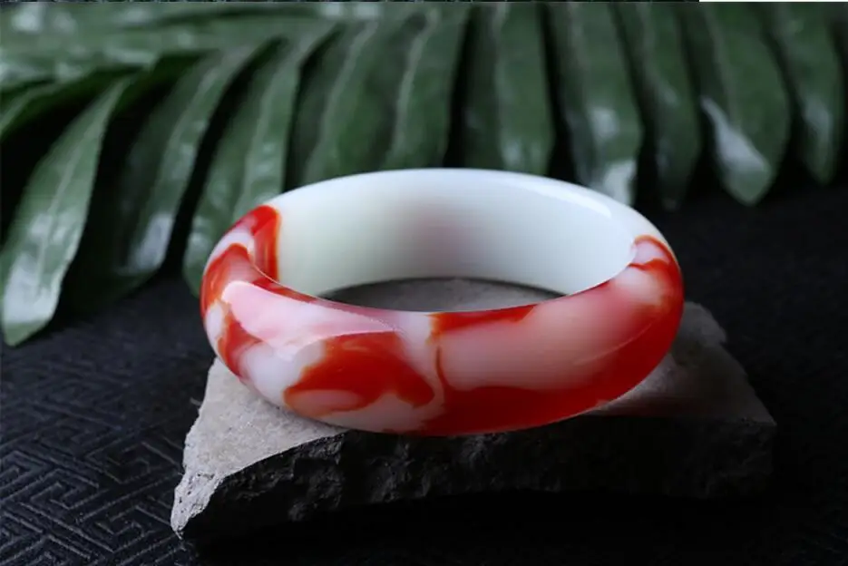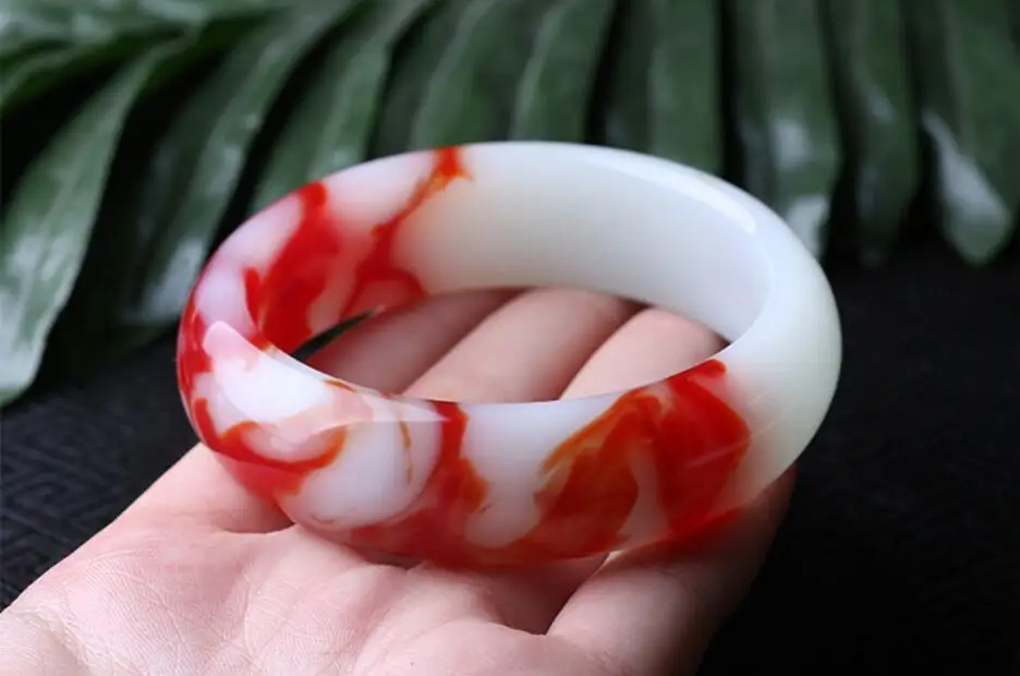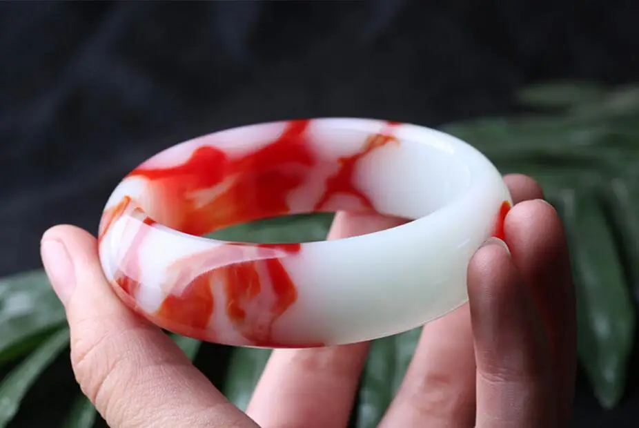 Fine Jewelry China's Unique Fashion Beautiful Red and White, Jade Bangle Bracelet