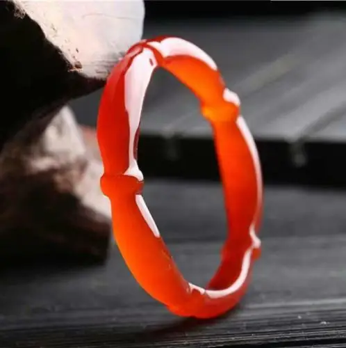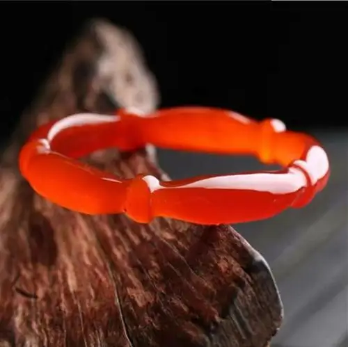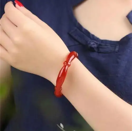 Fine Jewelry Fashion Pretty 100% Natural Primary Red Agate Bamboo Shape Bracelet