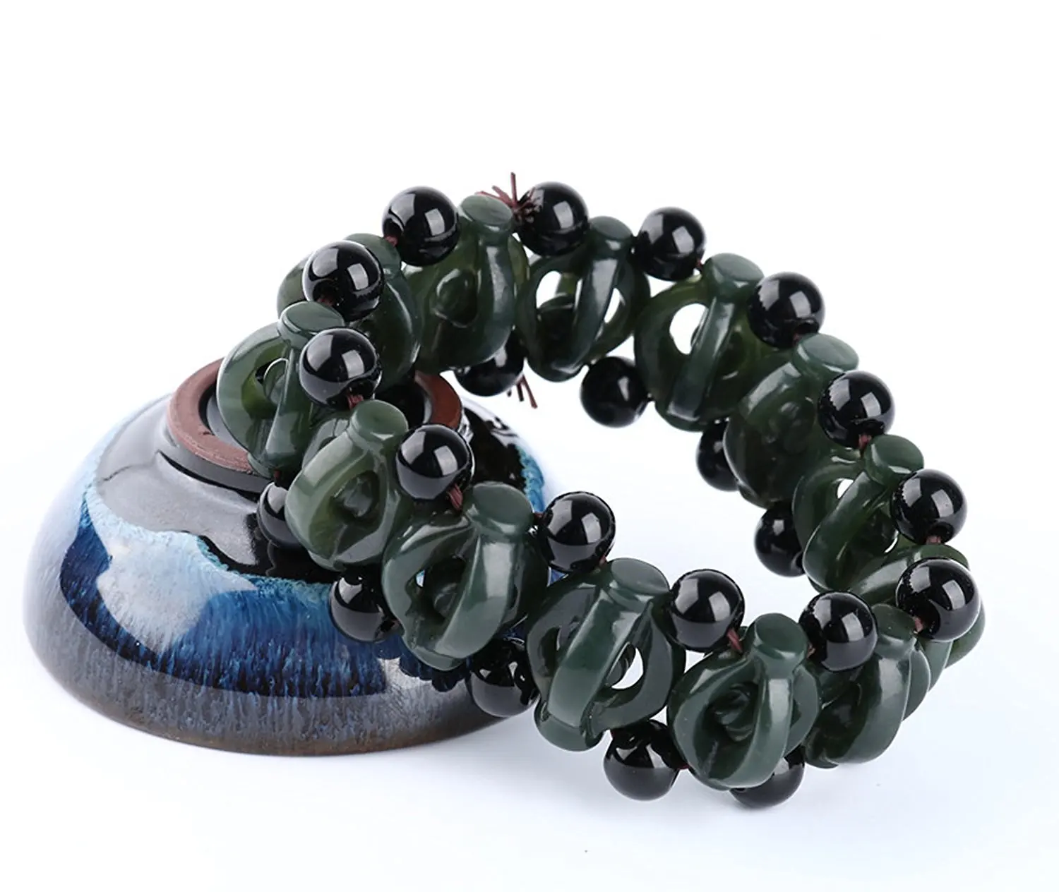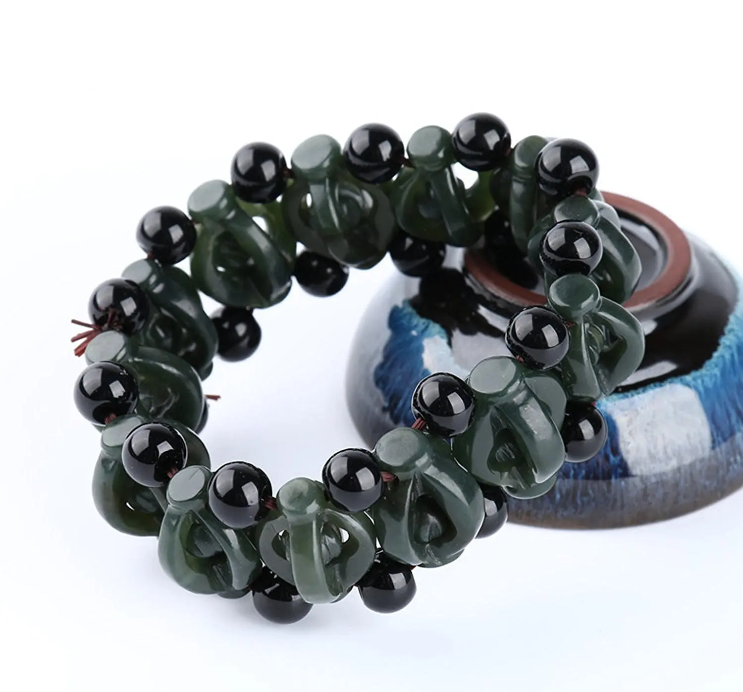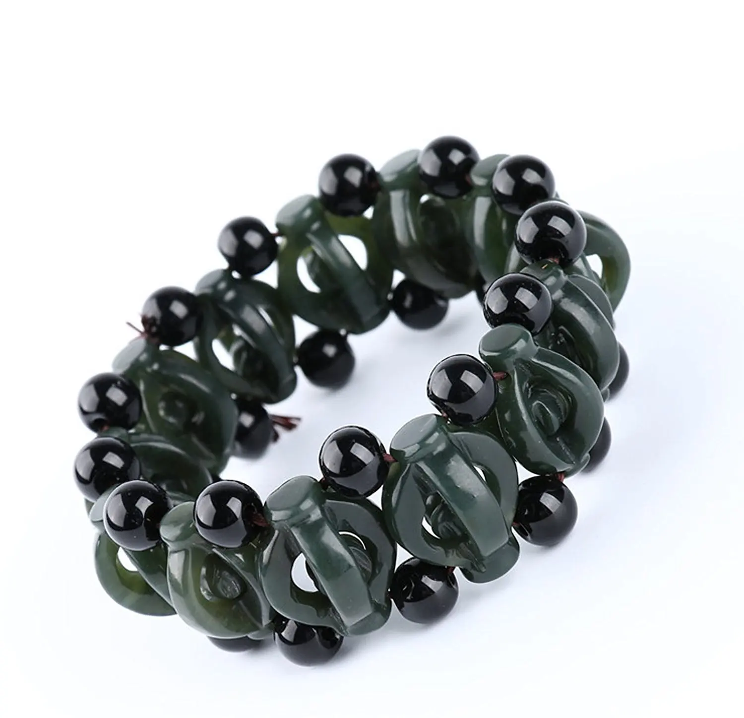 Fine Jewelry Pure Natural Green Jade Hand Carved Female Male Bracelet Bangle Hand Catenary Elegant Generous