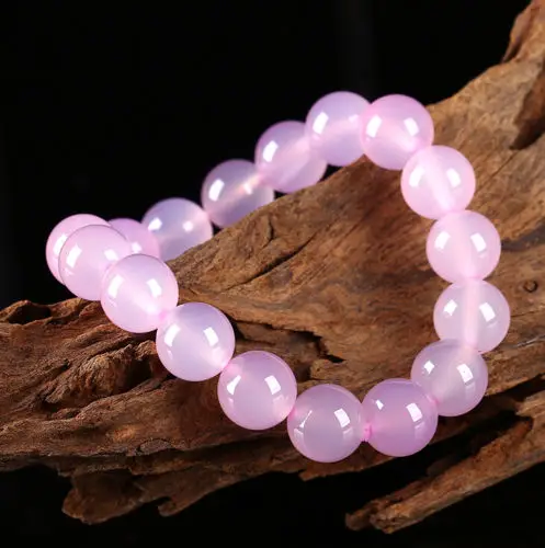 Fine Jewelry Unique beautiful pink agate bracelet chalcedony beads 10 mm elastic bracelet
