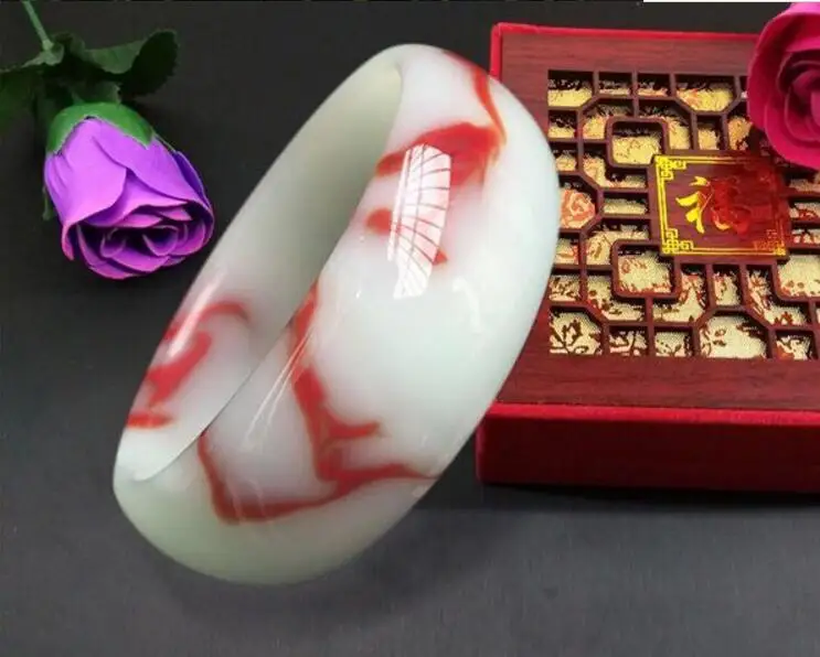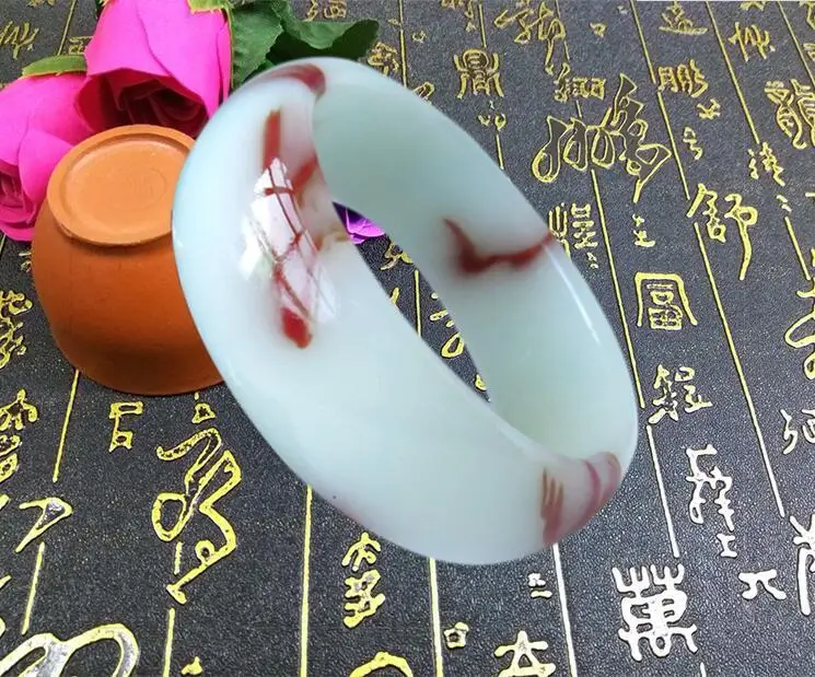 Fine Jewelry Unique Natural Rare Blood Stone Hand-carved Bracelet Diameter 56mm--62mm
