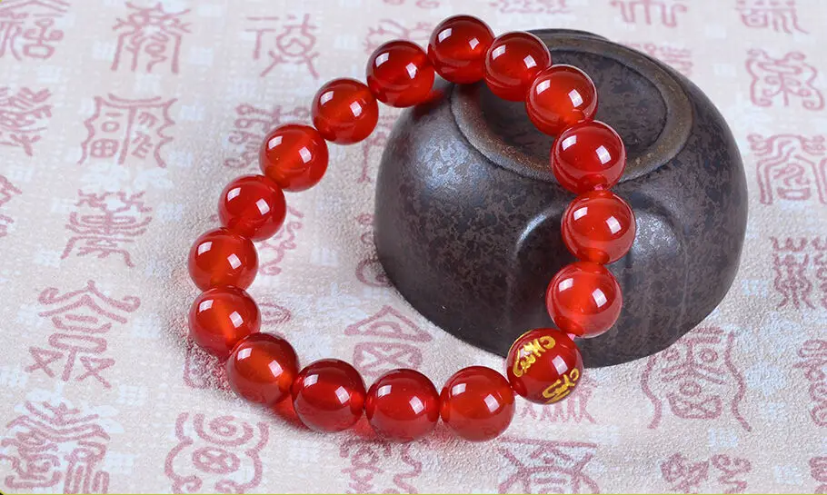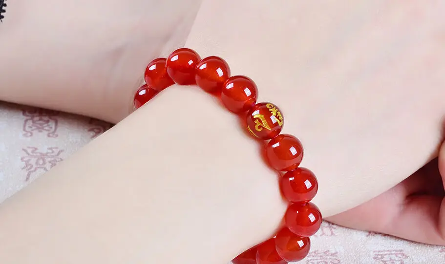 Fine Jewelry Women Stone AAA Natural Red Agate Gemstone Round Beads Stretch Bracelet 10mm