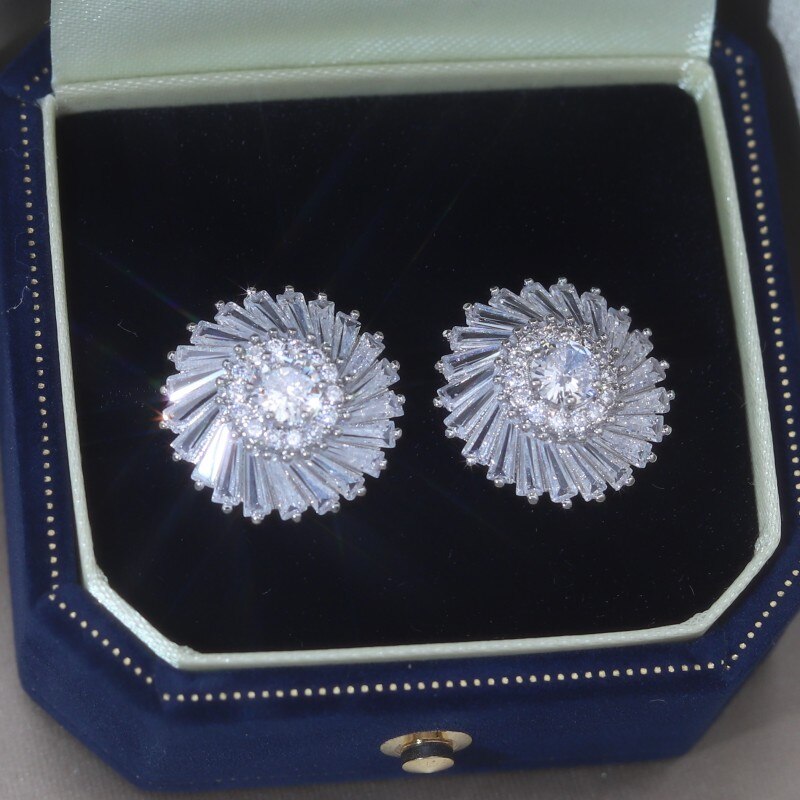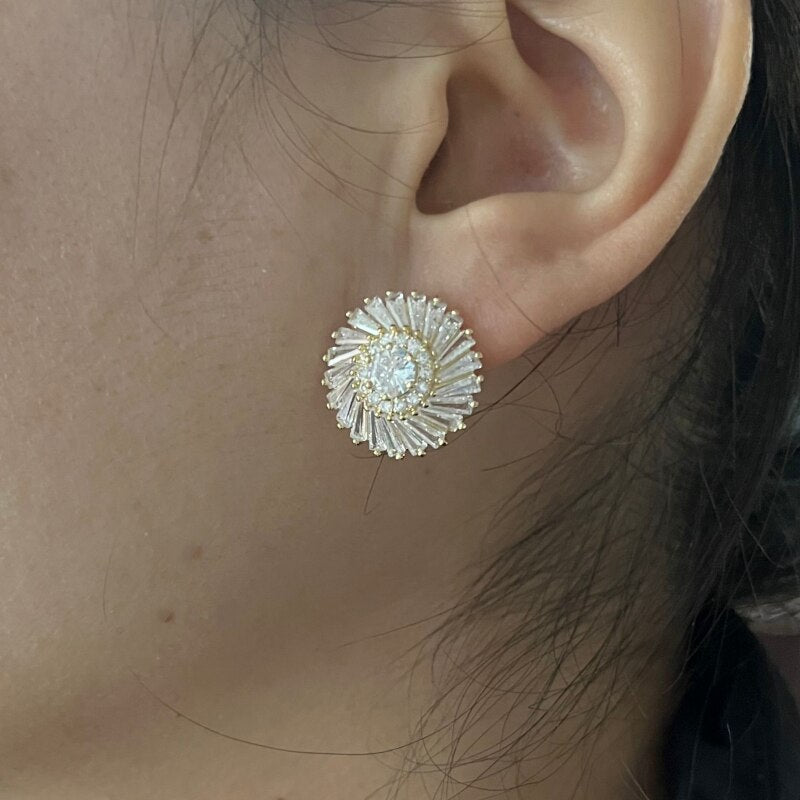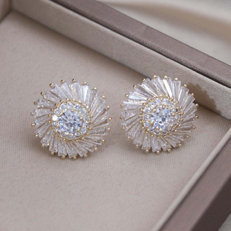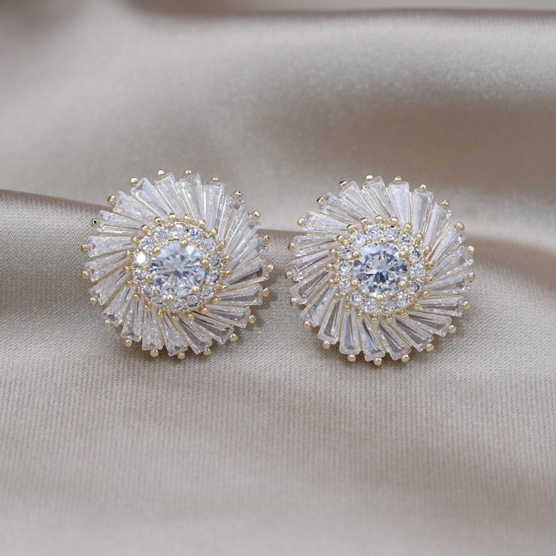 Korea Design Jewelry 14K Gold Plated Copper Set Zircon Round Earrings Elegant Women's Party Party Accessories