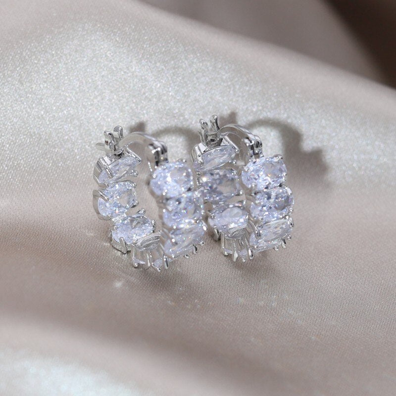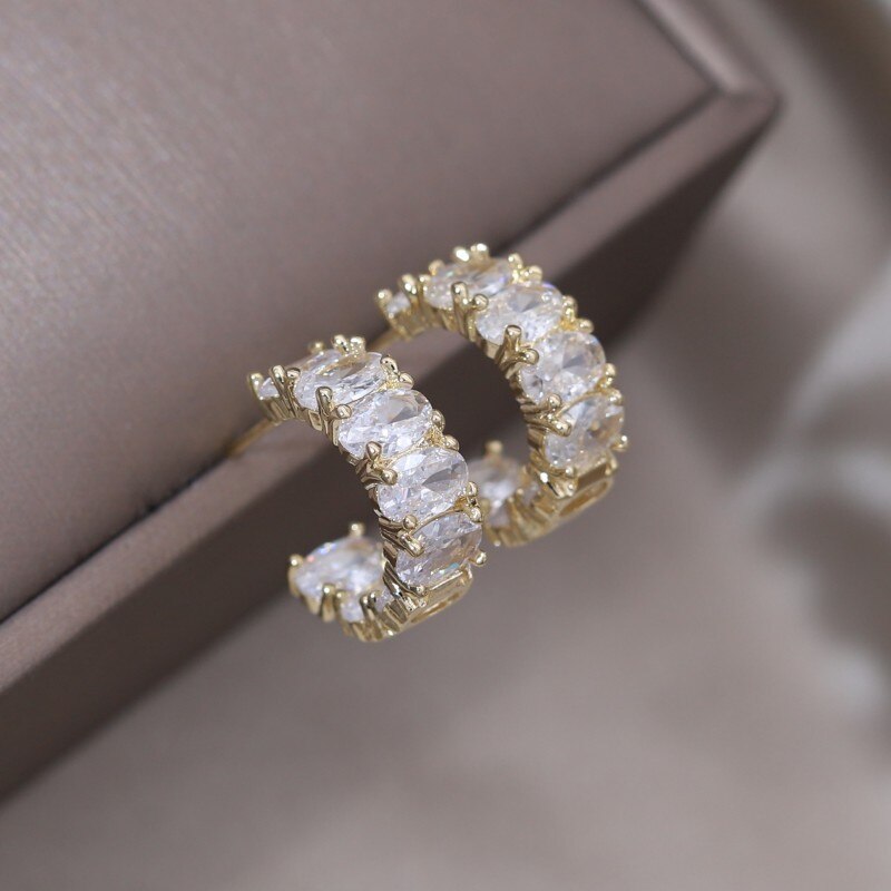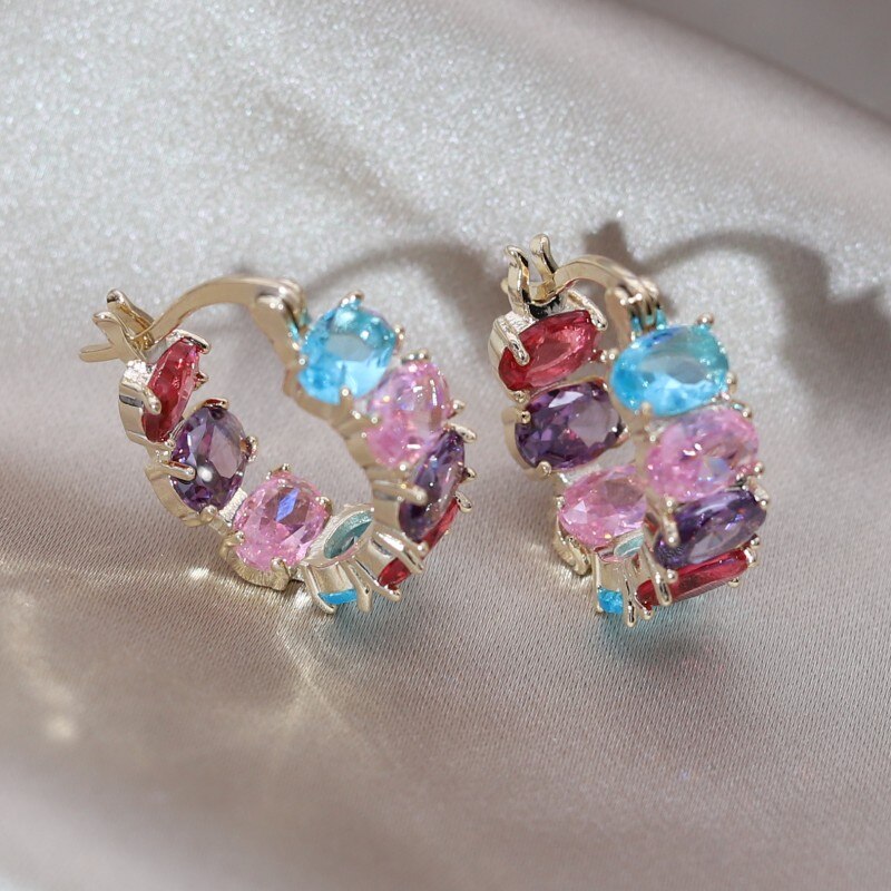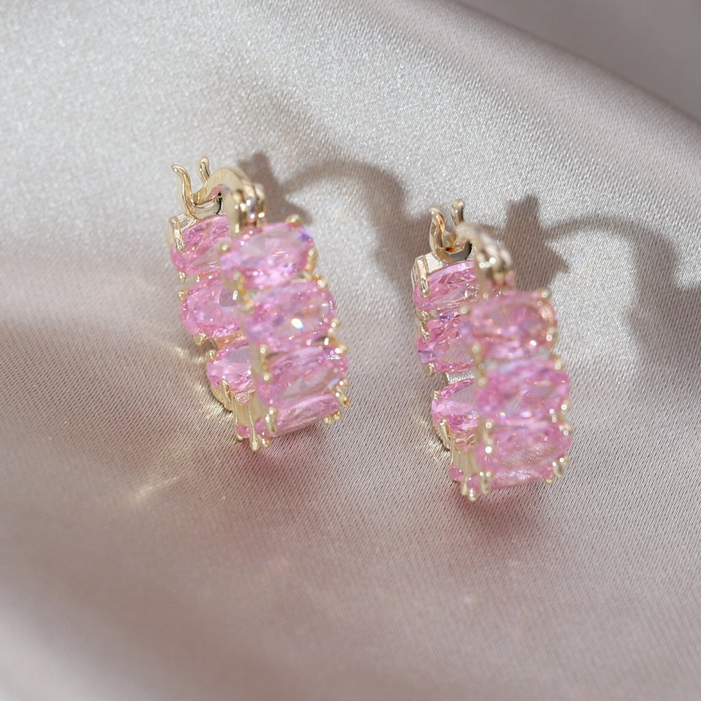 Korea Design Jewelry 14K Gold Plated Orange Oval Zircon Round Earrings Elegant Women's Daily Work Accessories