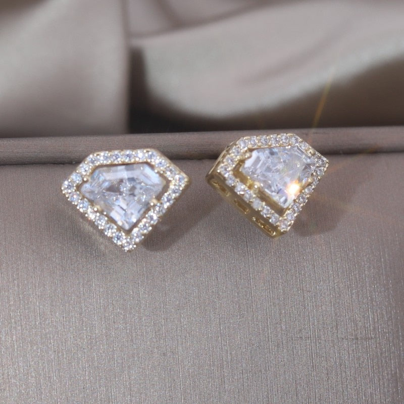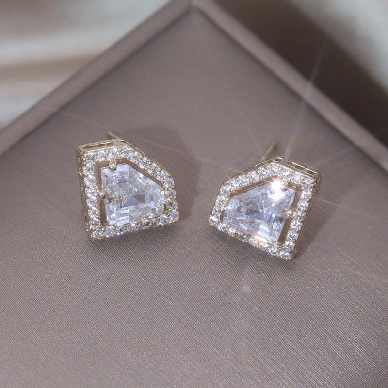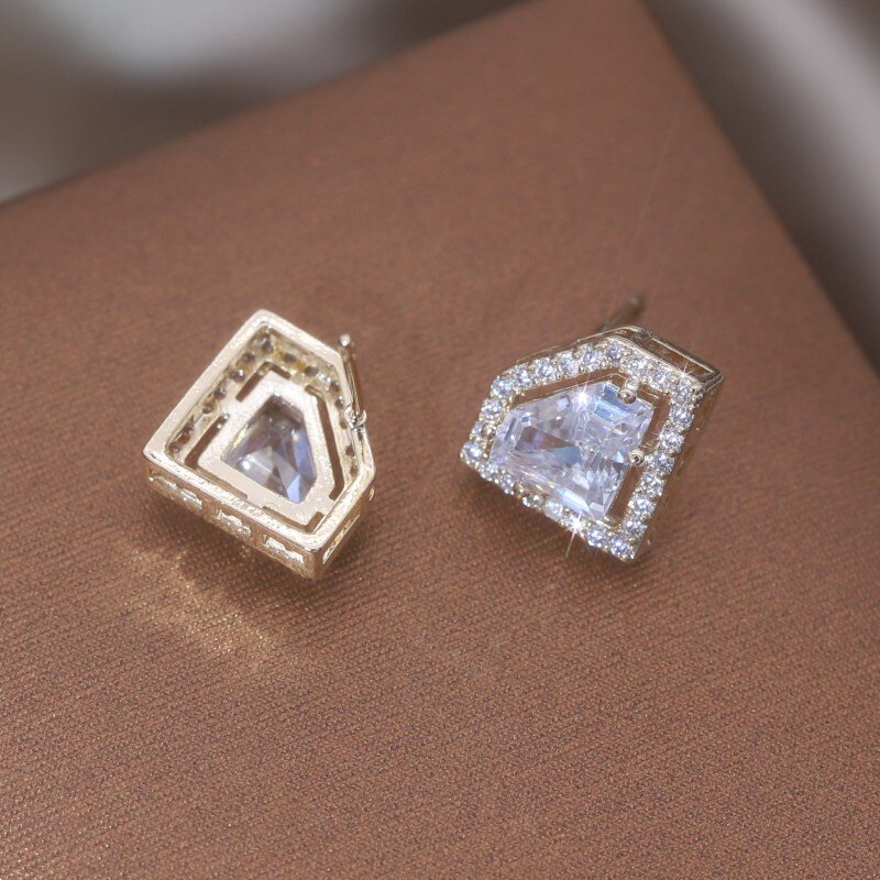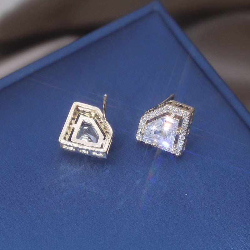 Korea Design Jewelry 14K Gold Plating Crown Zircon Geometric Earrings Elegant Women's Daily Work Accessories