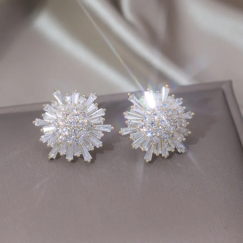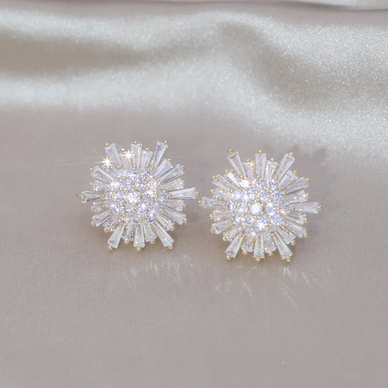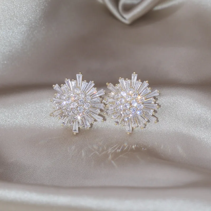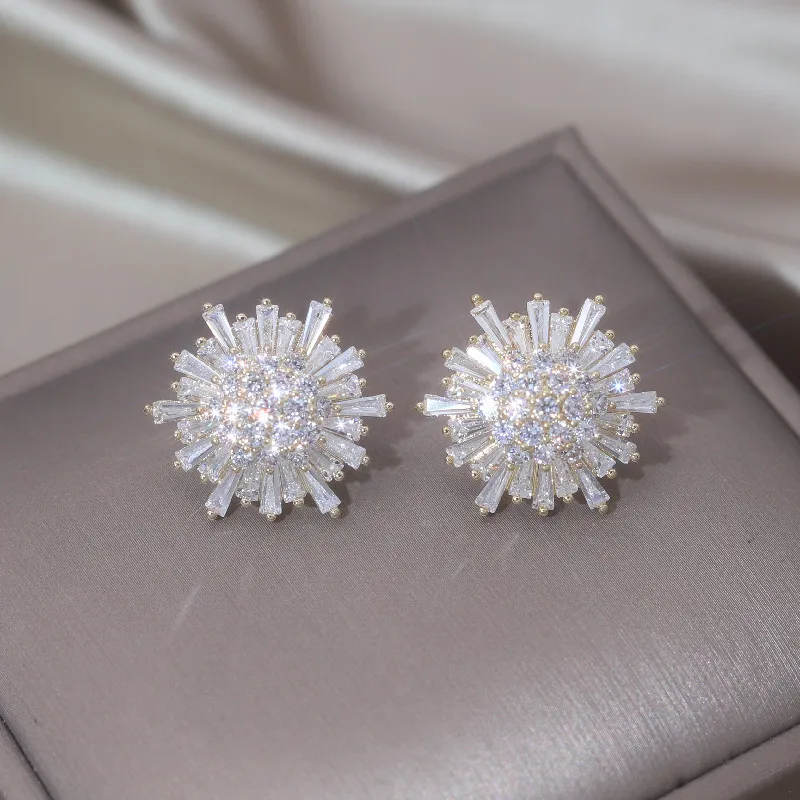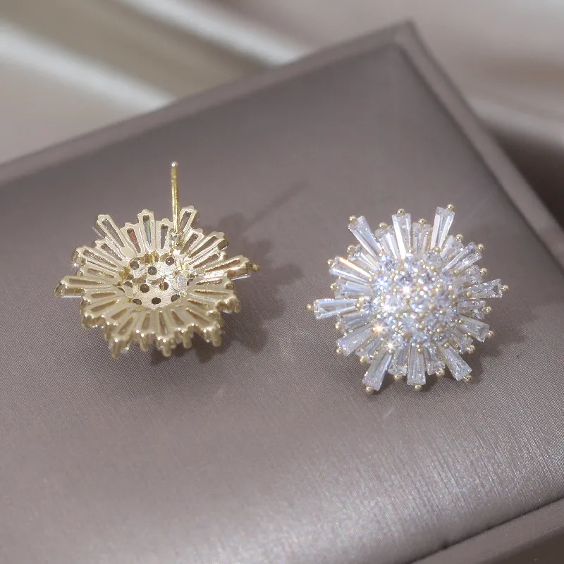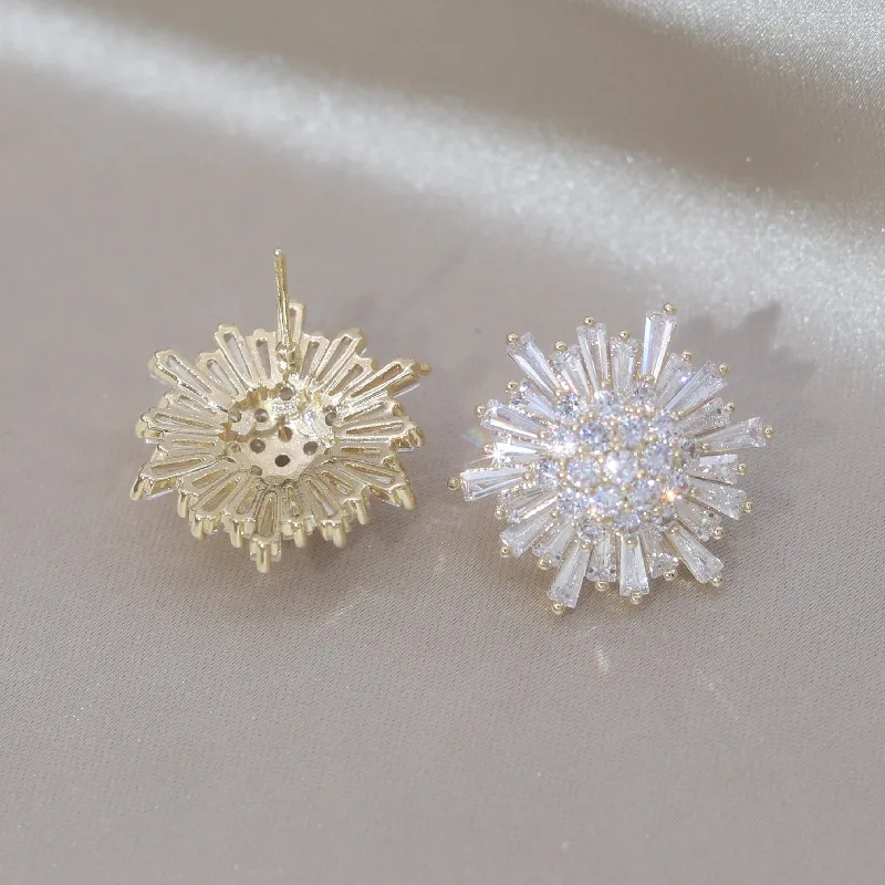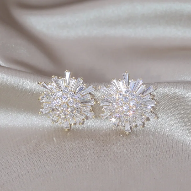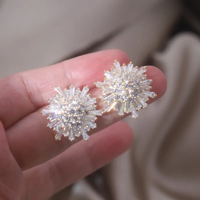 Korea Design Jewelry 14K Gold Plating Irregular Zircon Round Earrings Elegant Women Wedding Party Accessories