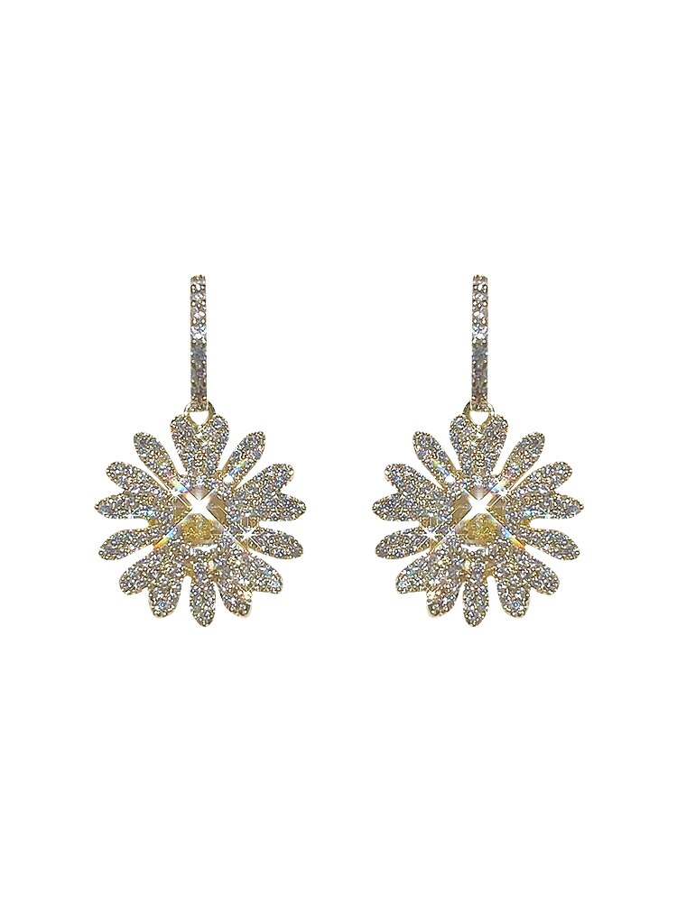 Korea Design Jewelry AAA Zircon 14K Real Gold Plating Daisy Earrings Shiny Women's Wedding Accessories