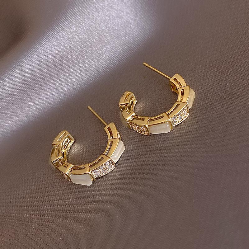 Korea Design Jewelry Exquisite Zircon Opal Dionysus Half Circle Earrings Elegant Women's Daily Work Accessories