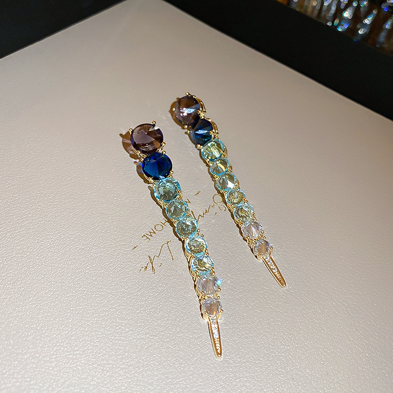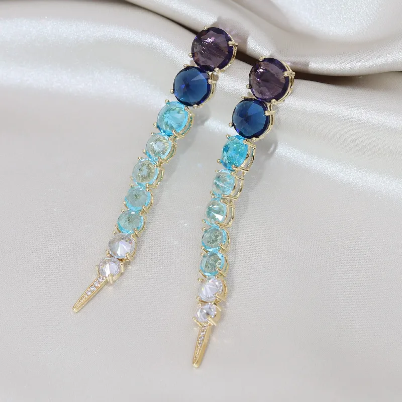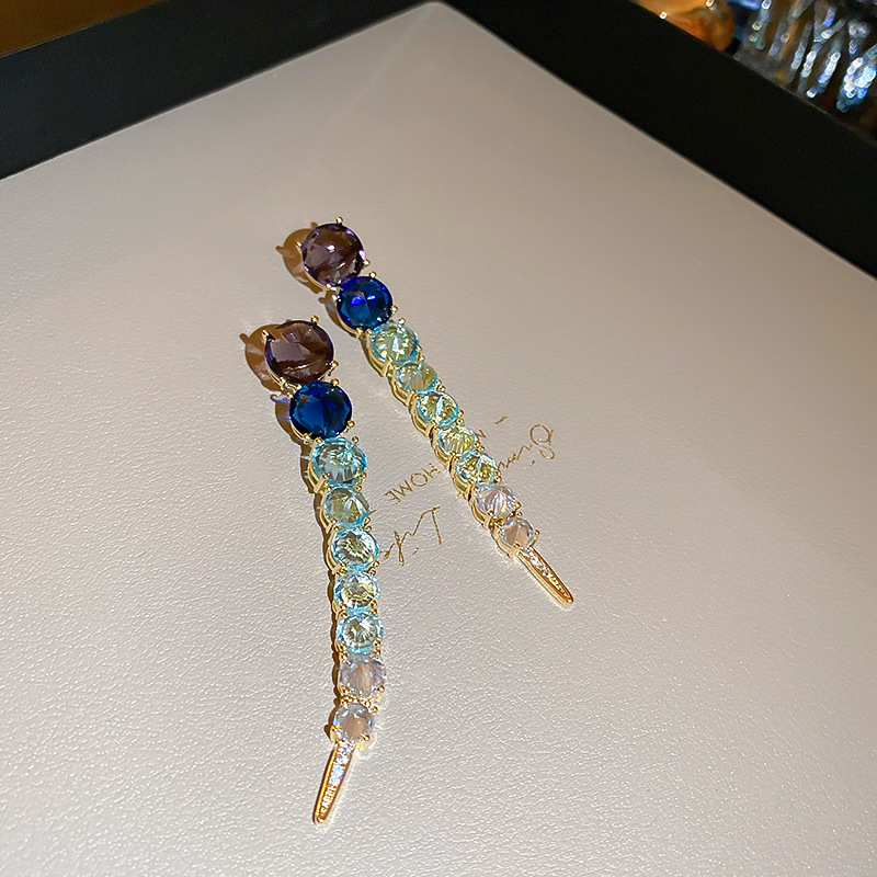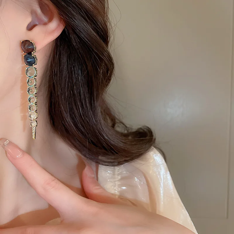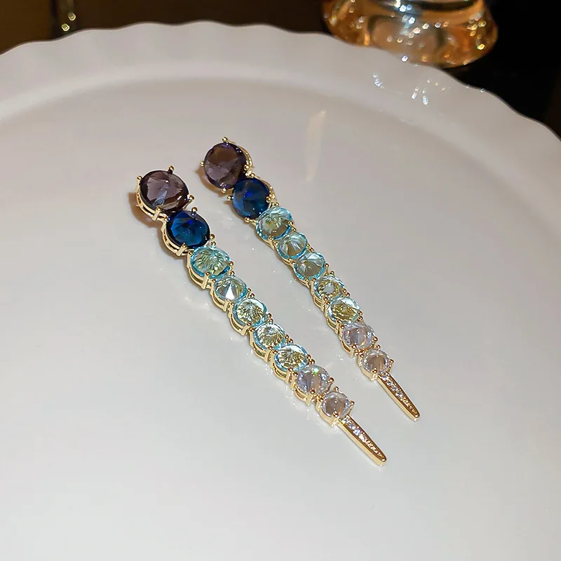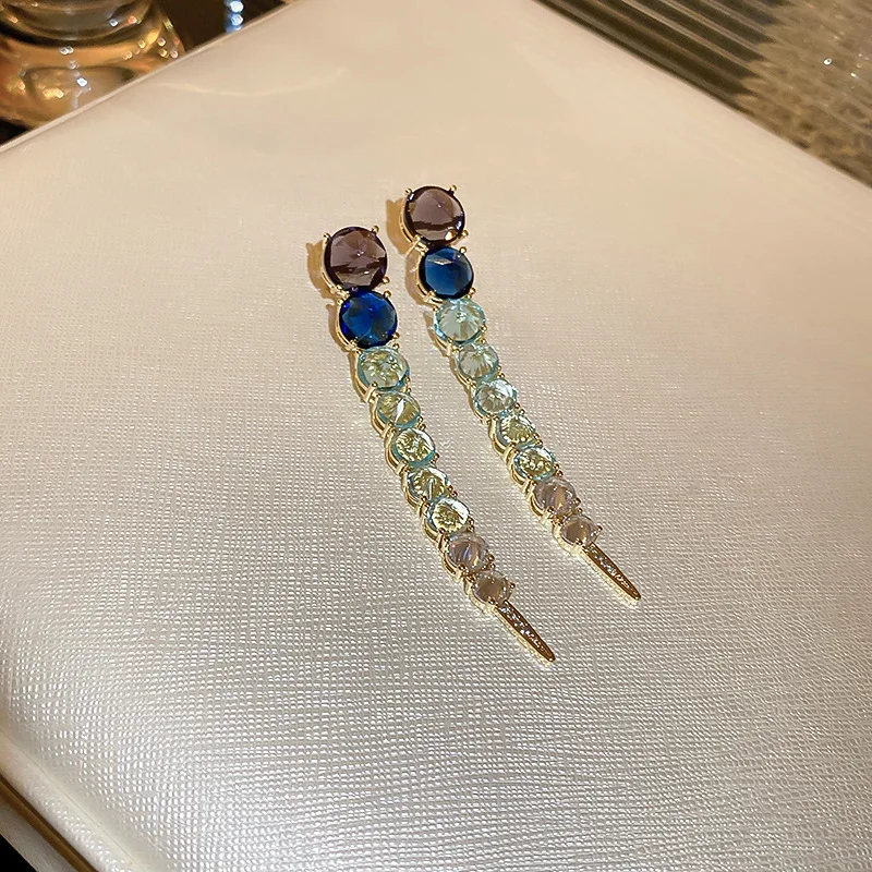Korea Design Jewelry Long Colorful Crystal Gradient Earrings Women Prom Party Accessories