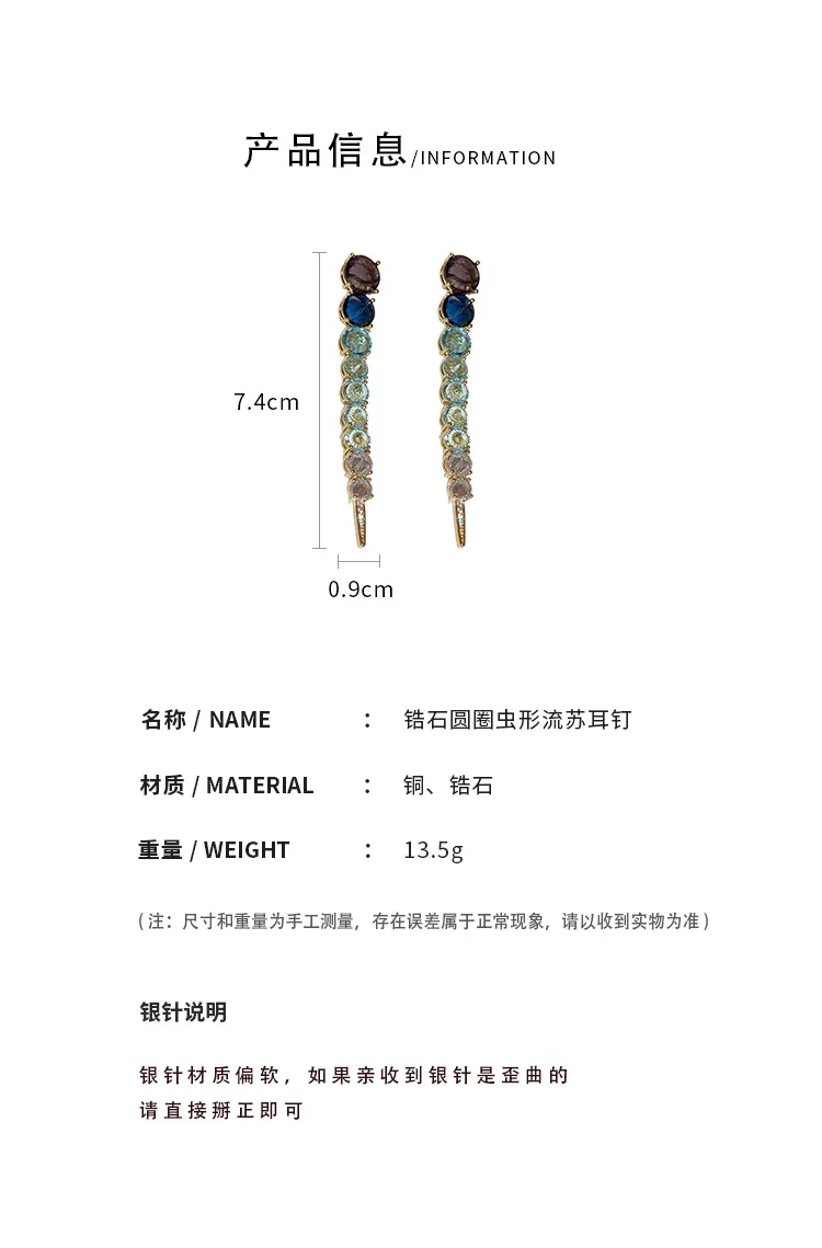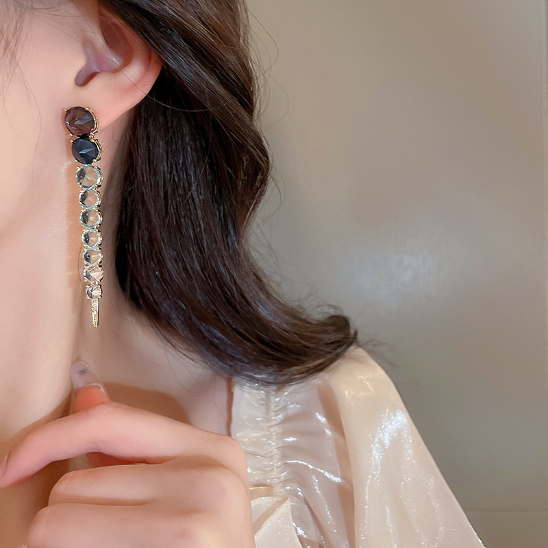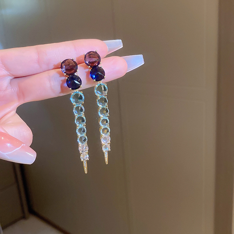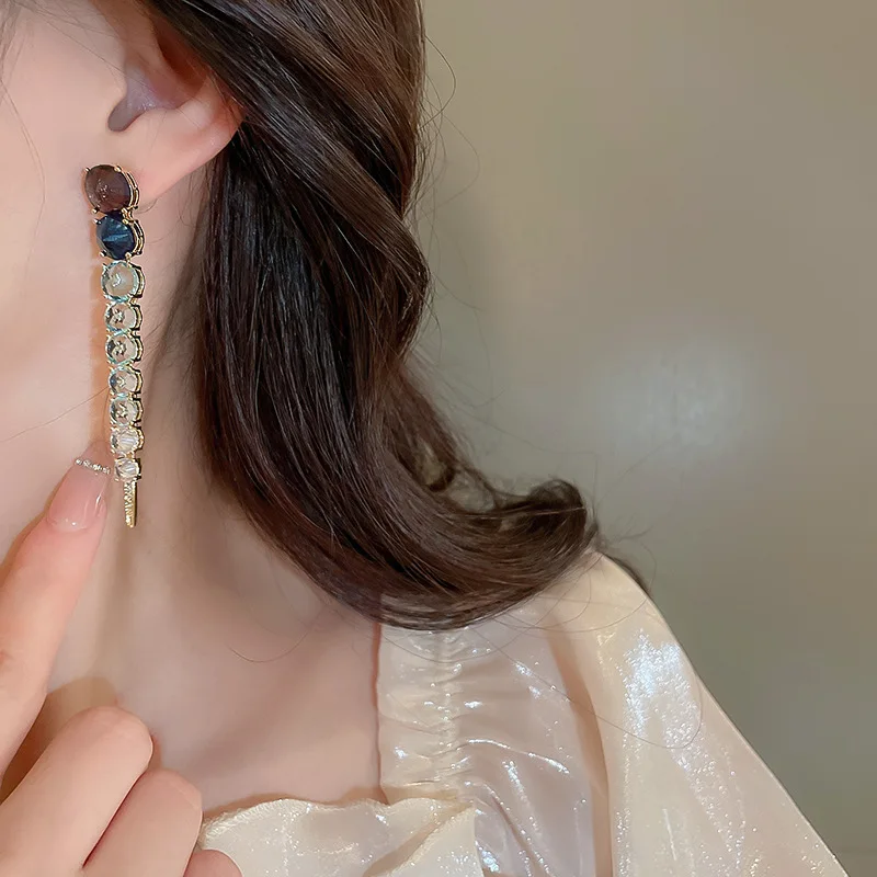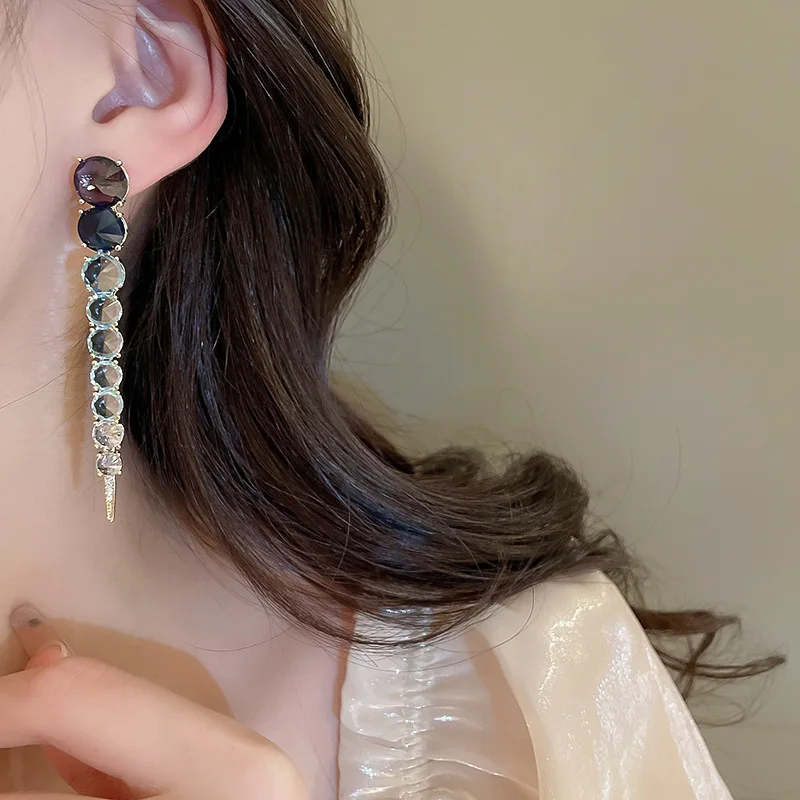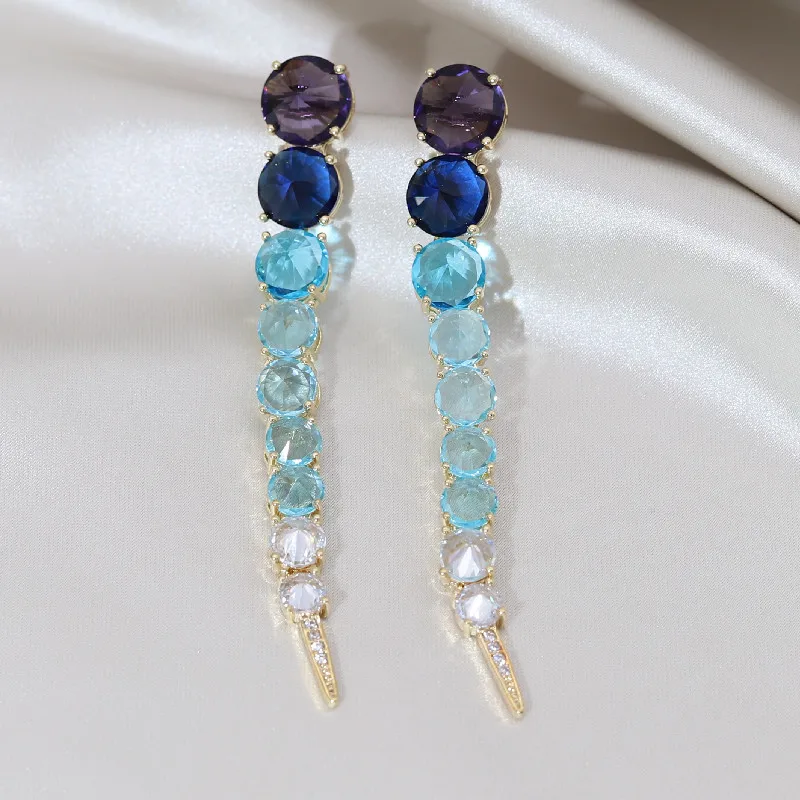 Korea Design Jewelry Long Colorful Crystal Gradient Earrings Women Prom Party Accessories