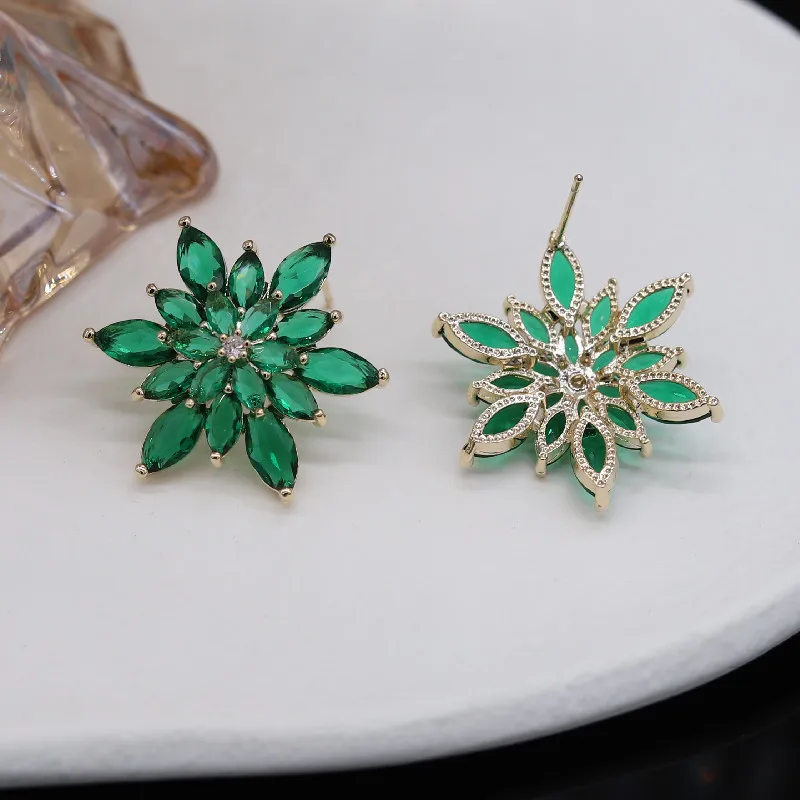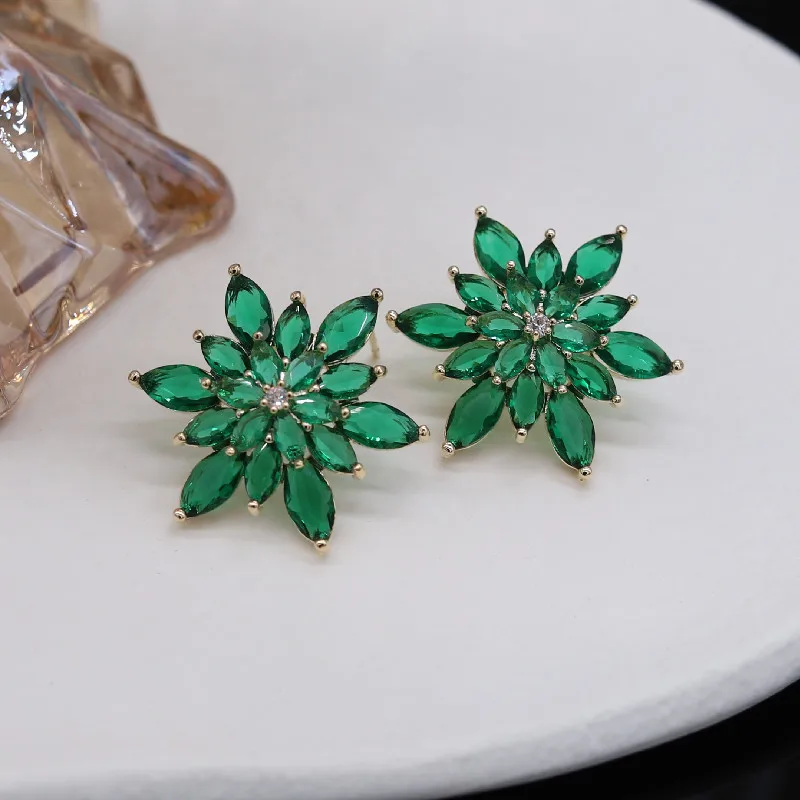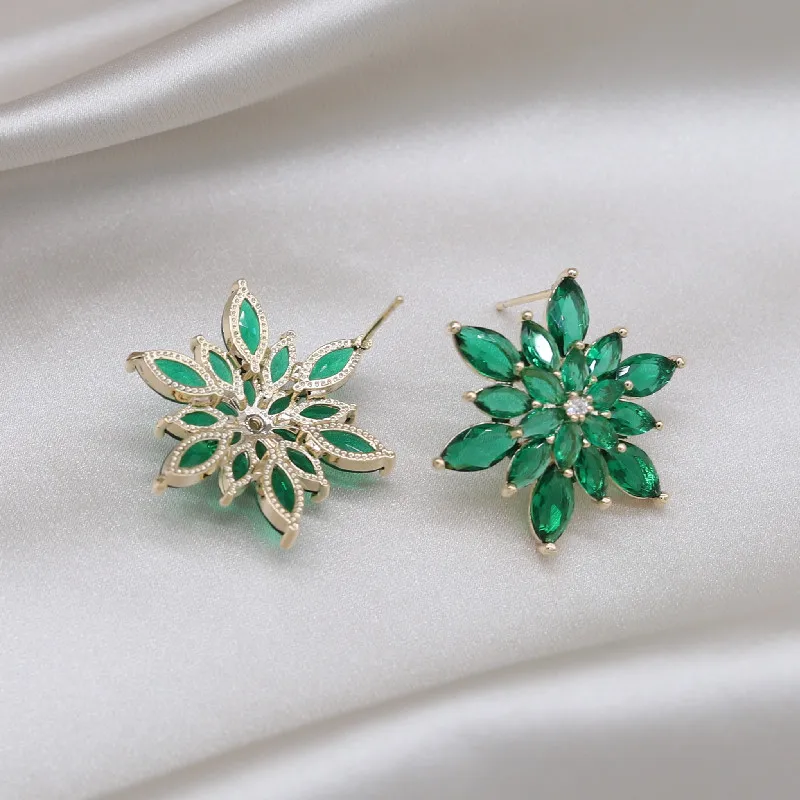Korea Design Jewelry silver color Zircon Flower Earrings Elegant Women Shiny Wedding Party Earrings