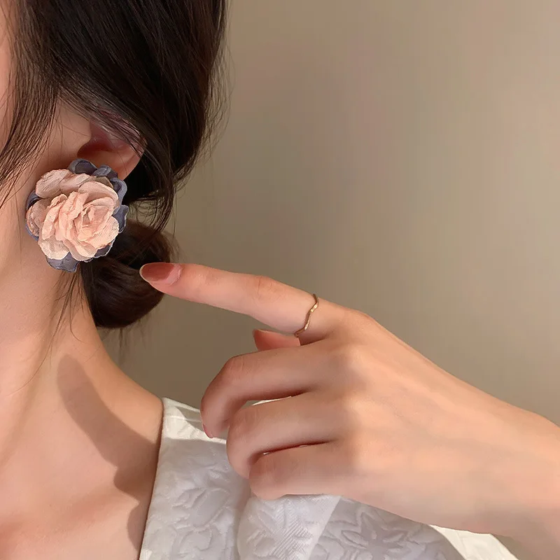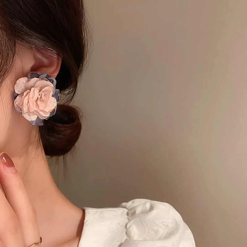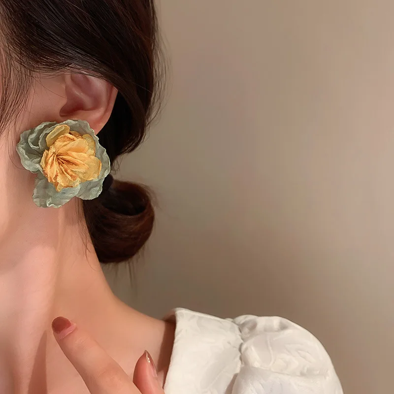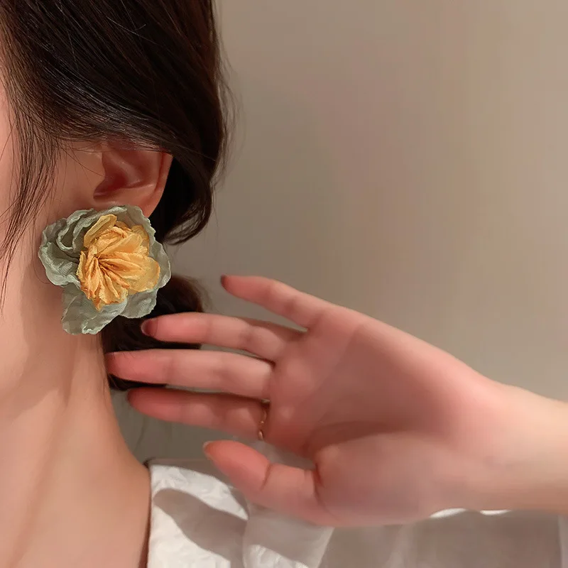 Korea Design Jewelry Sweet Colorful Cloth Flower Earrings Elegant Women Summer Style Beach Party Earrings