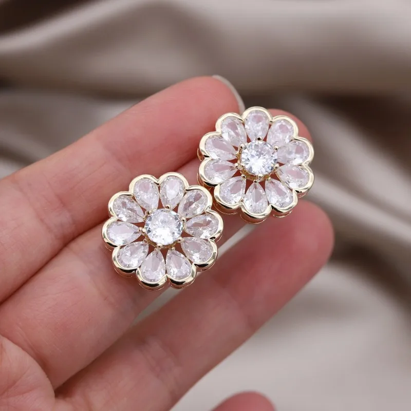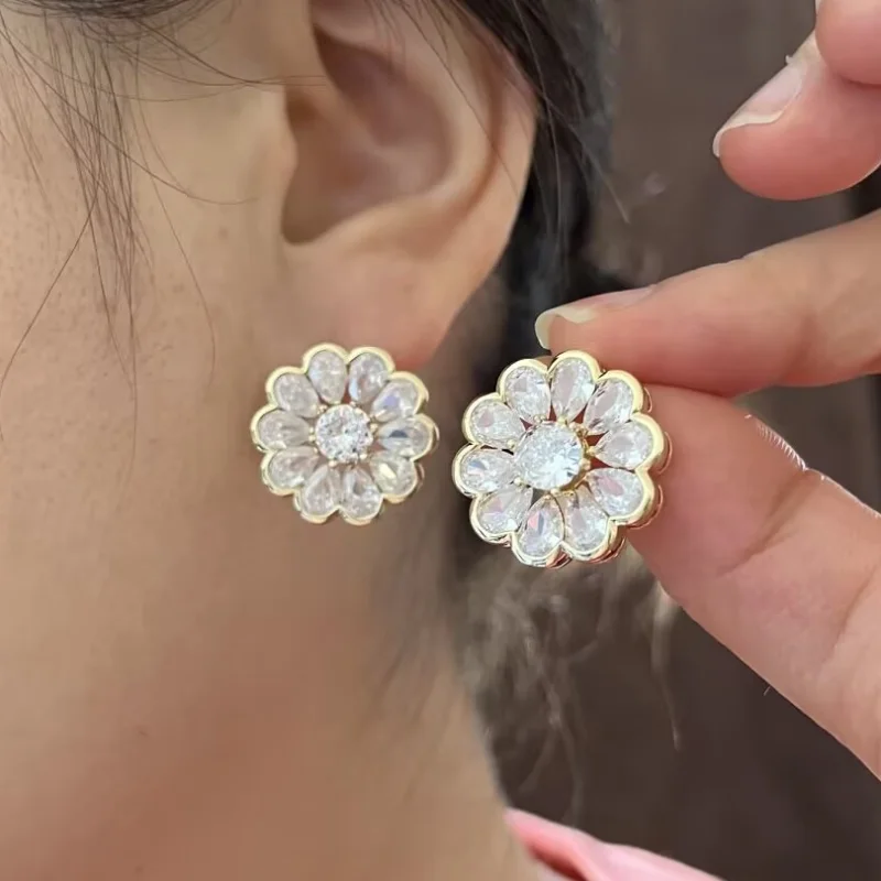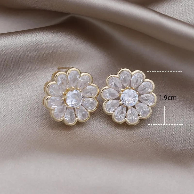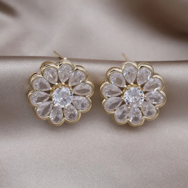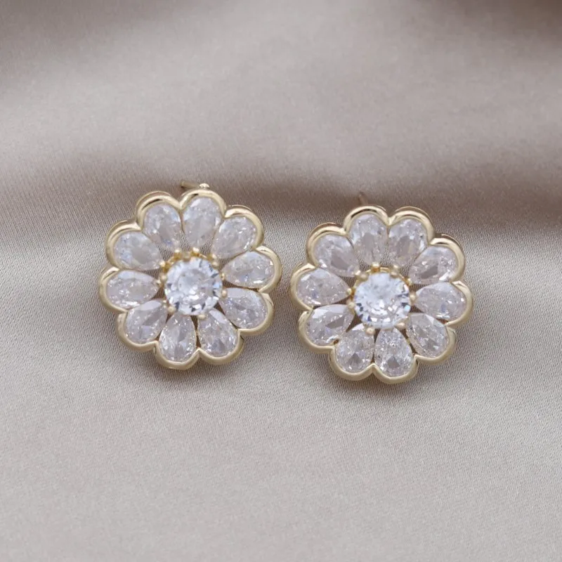 Korea Jewelry 14K Gold plated Copper Set Zircon Water Drop Round Earrings Elegant Women's Prom Party Accessories