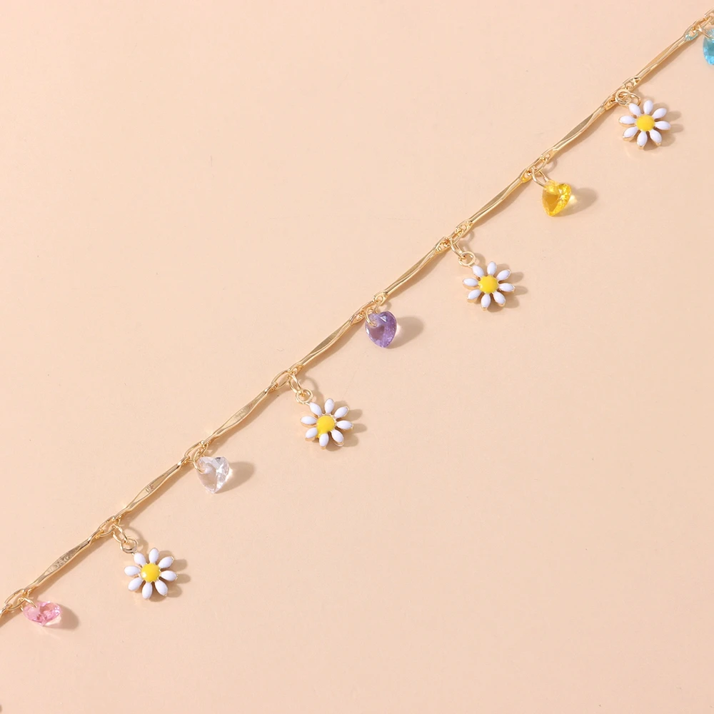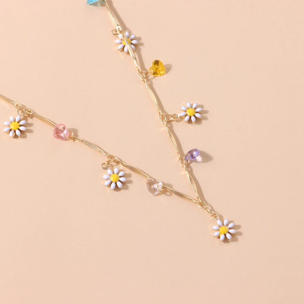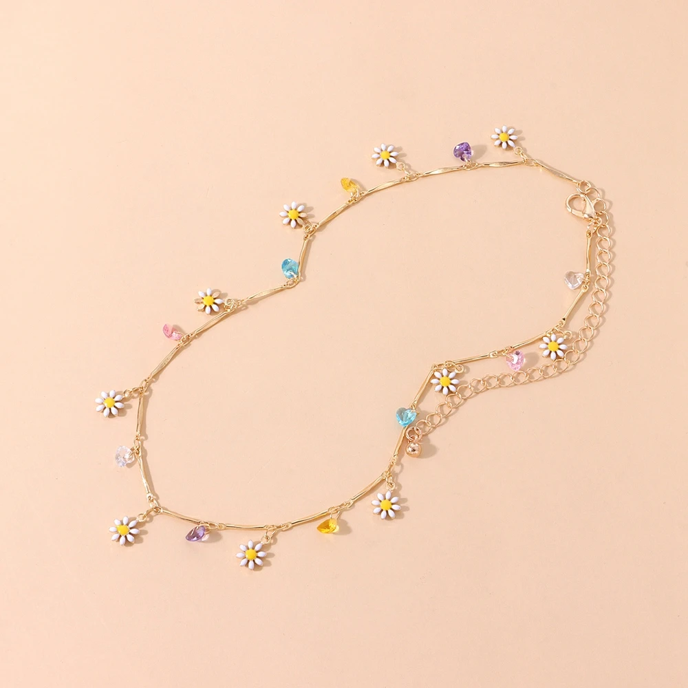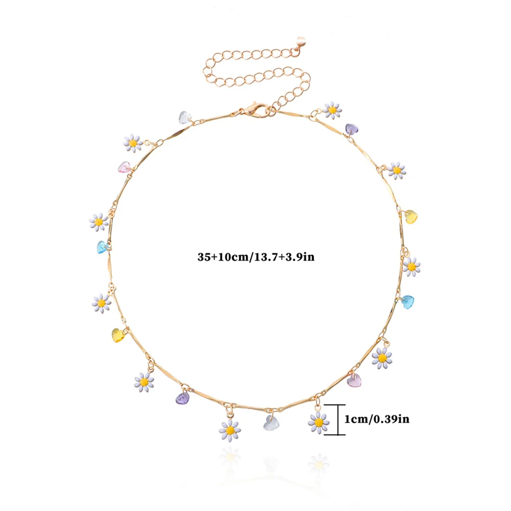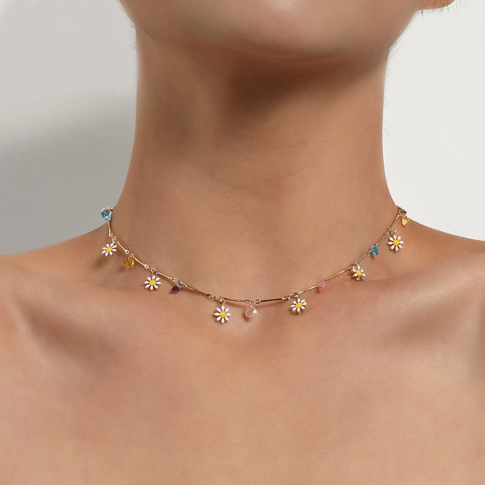 Korea Style Daisy Pendant Necklace Colorful Beaded Short Choker Lovely Necklace For Women Girls Party Vacation Jewelry
