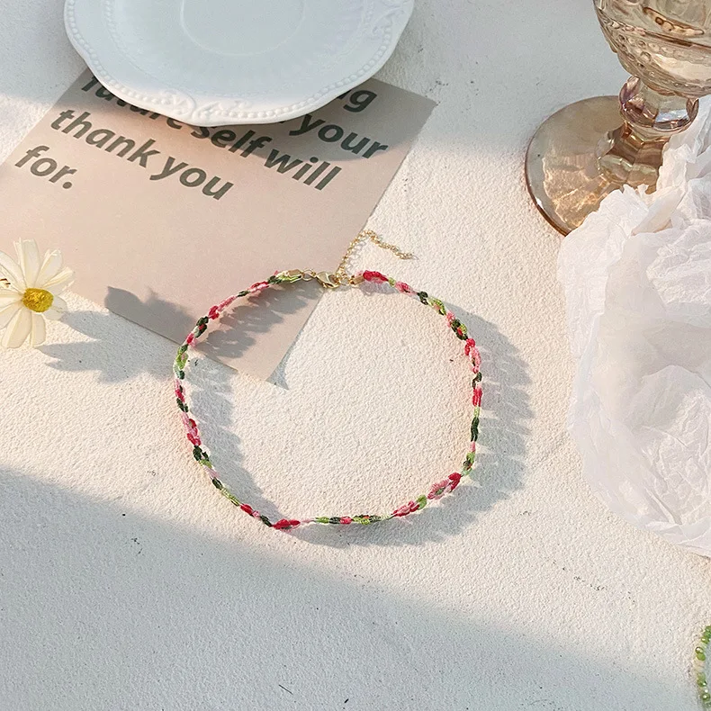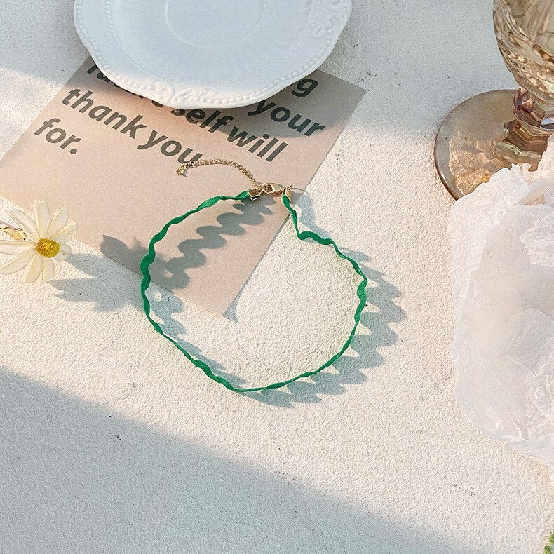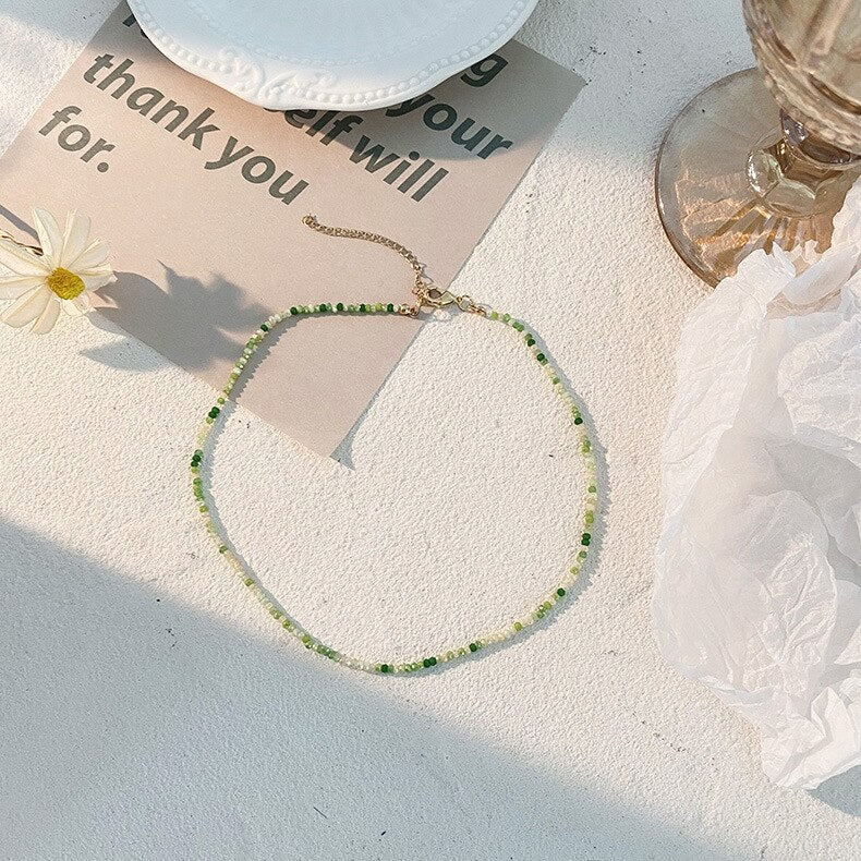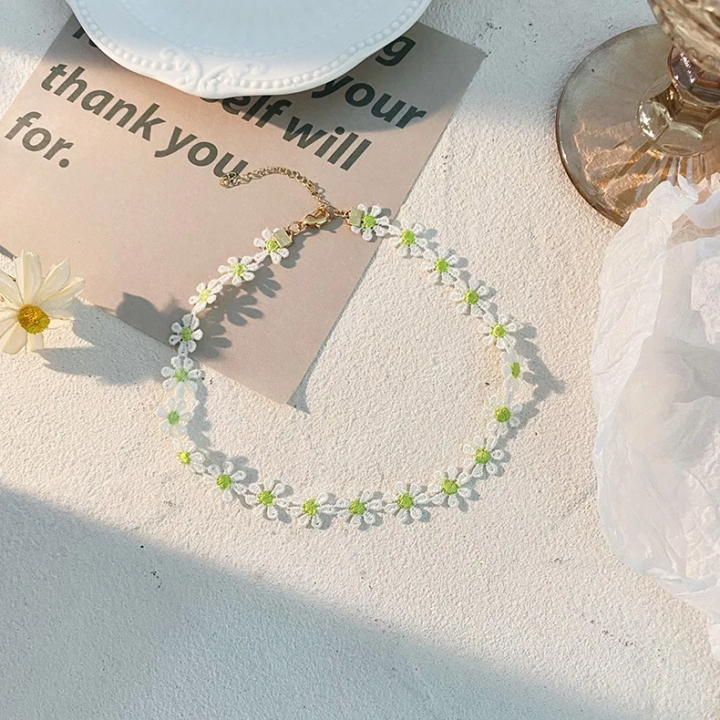 Korea Summer Sweet Simple Lace Beaded Flower Green Lace Pendant Choker Necklace for Women Aesthetic Jewelry